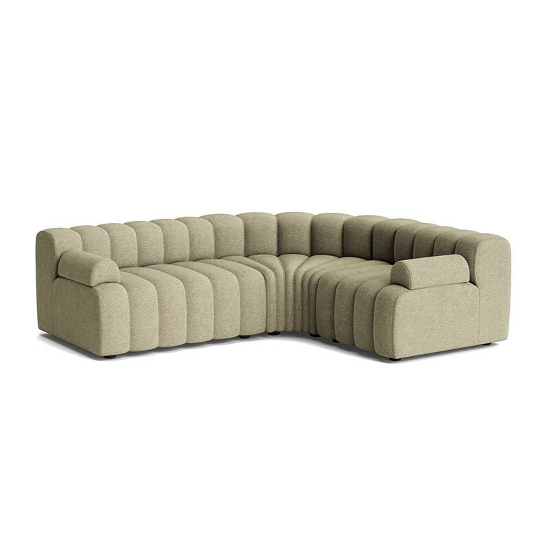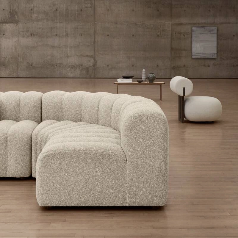 Edited by NORR11, the collection of Studio sofas is a tribute to the timeless era of the 70s and its expressive aesthetic. This sofa system is made up of simple, versatile modules that can be used to create an unlimited number of original compositions to fit into all kinds of environments, whether in a home or a spacious public area. Studio features bold upholstery inspired by the sofa styles of the late 70s, refined in a contemporary way, creating a sofa with a unique identity. Each module of Studio articulates soft, welcoming lines ideal for living, socialising and relaxing, and creates a space where you can feel totally at ease. The arm cushion is independent and can be moved and repositioned throughout the series, balancing the fluted upholstery. Studio 4 consists of a Large module, a Corner module, a Medium module and two armrests.