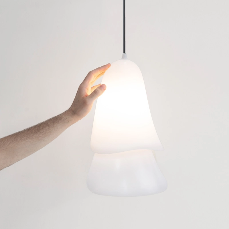 Designed by Constance Guisset for Moustache, Cape is a collection of intriguing light fittings with organic silhouettes. The lights are composed of two interlinked shapes that impart a soft and graceful light. Made of injected plastic and available in several colours, Cape is shown here as a pendant lamp – functional, fascinating and sculptural – that will enhance a bedroom or living room.