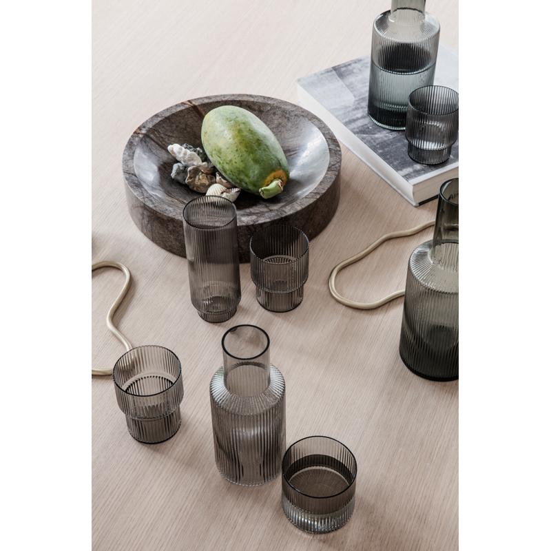 Glassware Set of 4 long drink glasses RIPPLE Smoked grey FERM LIVING