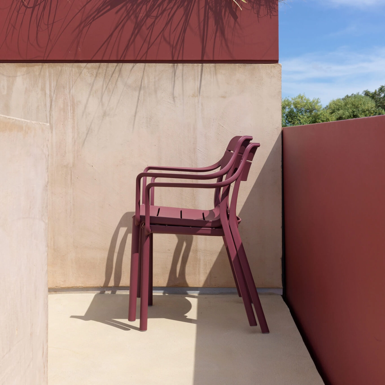 Outdoor Chair and Small Lounge Chair CASSIA with armrests Burgundy NARDI