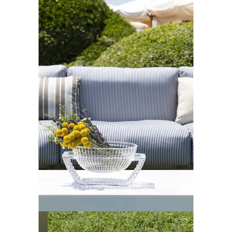 The U Shine centrepiece was designed by Catalan designer Eugeni Quittlet for the Kartell brand. This sculptural object is distinguished by its transparent PMMA structure, which reproduces the appearance of light-catching crystal. Its geometric shapes play with fullness and emptiness to create a light, refined silhouette. The centre table U Shine is available in several colours to match your interior perfectly.
