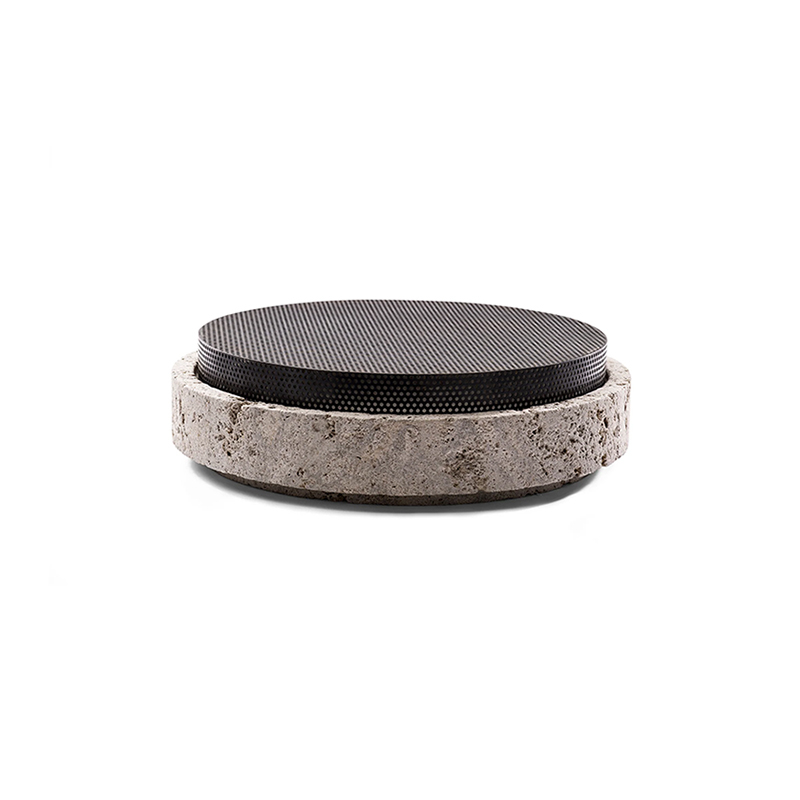 Edited by When Objects Work, this beautiful bowl is the creation of architect Nicolas Schuybroek. Its architecture is characterised by a keen sense of detail, craftsmanship and intuition, while retaining a sense of warmth. The search for timeless minimalism and apparent simplicity is at the heart of his work, as is his love of raw, tactile and unpretentious materials. This bowl has a base in German limestone and a bronze-finish lid, which can be used in both directions.