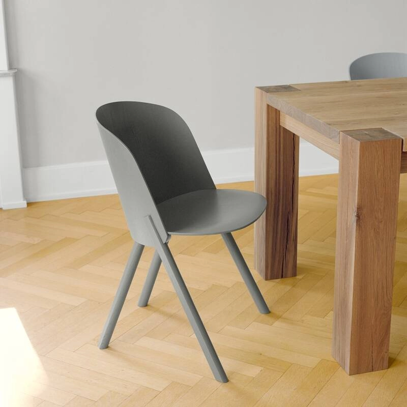Designed by Philipp Mainzer for E15, the This chair takes its name from the "This That Other" card trick. This simple-looking chair is made from moulded oak and solid oak. Its rounded shapes combine with a modern spirit while emphasising the meticulous woodwork. With a sober and high quality construction, the This chair can be used as a chair to go with your desk as well as around the dining room table.