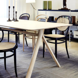 The 215 R chair, designed by Michael Thonet, represents the traditional bistro chair par excellence. A bestseller that also owes its success to the ingenuity of its designer, who already had the brilliant idea of delivering his chairs in kit form all over the world using one cubic metre containers. As a result, the 215 R chair has become an international classic that can be found in many cafés. Foolproofly stable with its taut cane seat and back and instantly recognisable curves, this iconic Thonet model is ideal for any private dining room or kitchen, as well as public dining spaces.