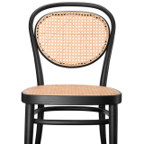 bois courbé de hêtre teinté, assise cannée, tissu sup- port en matière synthétique sous le cannage