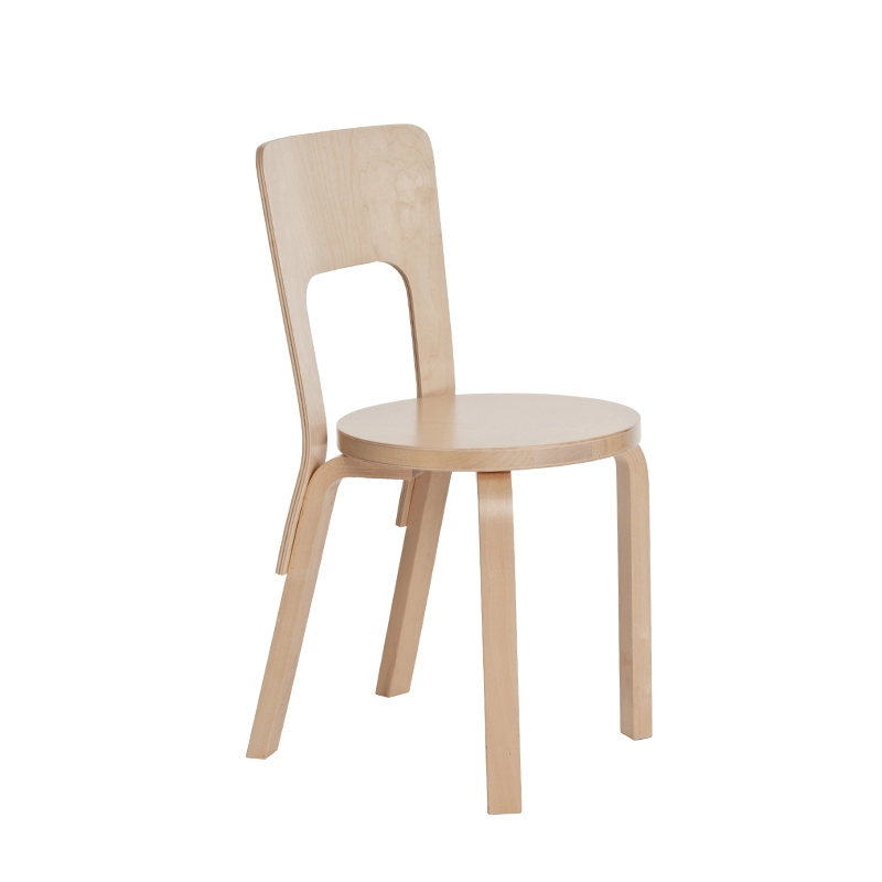 Chair 66 is a universal wooden chair in the tradition of classic kitchen and café chairs; its visible, additive construction logic is full of character and pleasing to the eye. The wide backrest offers comfort and flexibility, while the Finnish birch used to make this chair is both durable and lightweight. With its handle-shaped backrest, the 66 chair is easy to move wherever you need it.