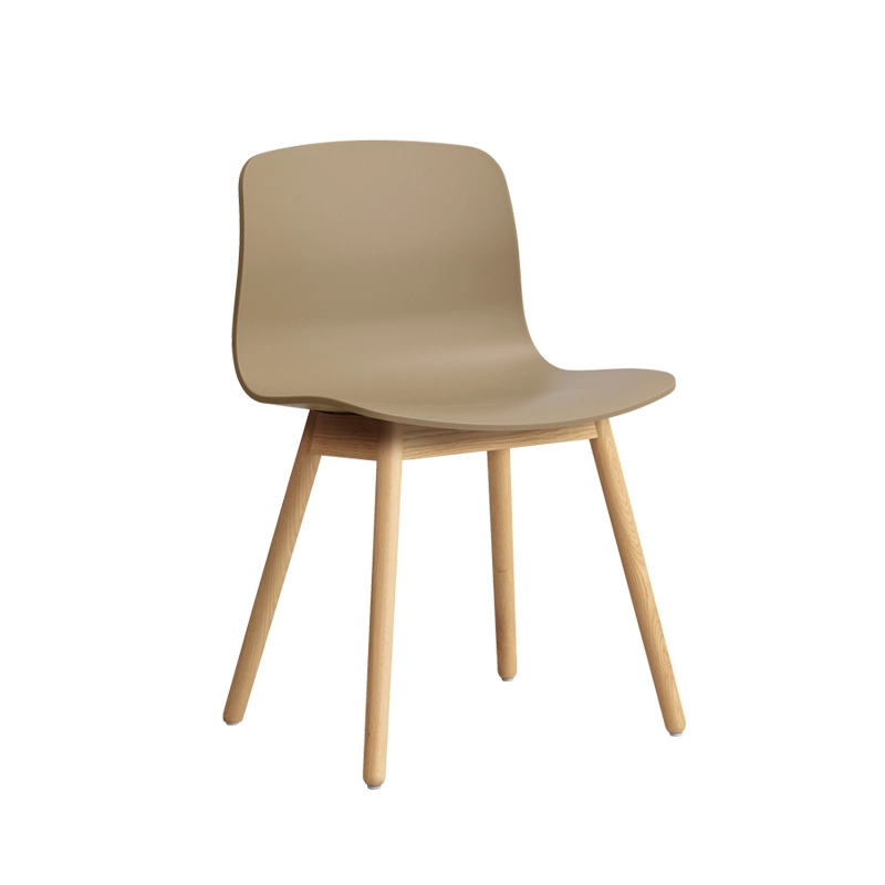 Designed by Hee Welling, the About A Chair collection sought to develop a chair equipped with undeniable simplicity. Understated, pure design for a chair that works just as well around a dining room table as it does around a conference table, in a canteen or in an office. The designer strived to combine form, function, detail and aesthetics. Produced by Danish company Hay, this collection features a wide range of colours and structures. Here, the polypropylene shell sits on a wooden base. Available as a chair and small armchair, About A Chair ensures optimum comfort thanks to its ergonomically shaped, wrap-around shell. A chair that perfectly symbolises the purity and understated, timeless style of Scandinavian design.