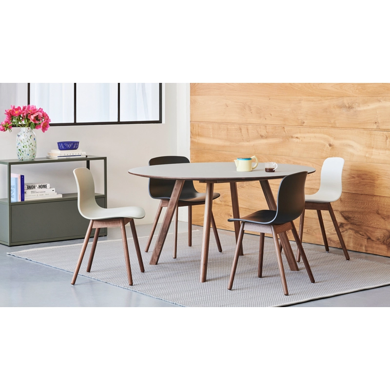 Designed by Hee Welling, the About A Chair collection sought to develop a chair equipped with undeniable simplicity. Understated, pure design for a chair that works just as well around a dining room table as it does around a conference table, in a canteen or in an office. The designer strived to combine form, function, detail and aesthetics. Produced by Danish company Hay, this collection features a wide range of colours and structures. Here, the polypropylene shell sits on a wooden base. Available as a chair and small armchair, About A Chair ensures optimum comfort thanks to its ergonomically shaped, wrap-around shell. A chair that perfectly symbolises the purity and understated, timeless style of Scandinavian design.