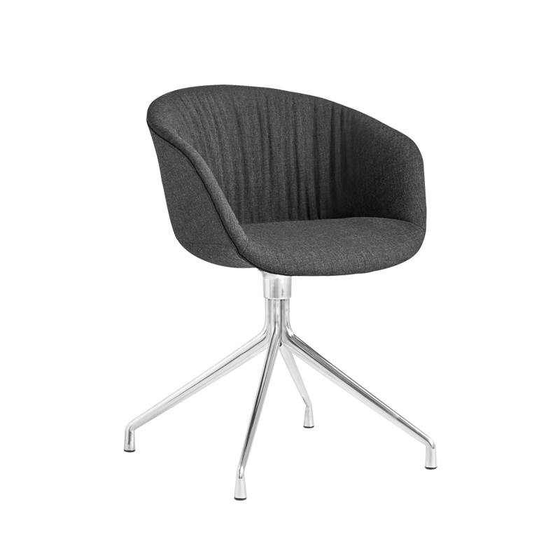 The small About A Chair AAC 21 Soft by Hay modifies the more formal expression of the aluminium swivel base with the softness and warmth of the quilted shell. Retaining the same curved shell with a unified silhouette that characterises the entire AAC series, this design features a functional base with legs that fan out from the centre. The AAC 21 Soft shell comes in a variety of upholstery options, offering a multitude of design combinations that give this AAC 21 Soft chair great versatility in a wide range of corporate, public and private settings.