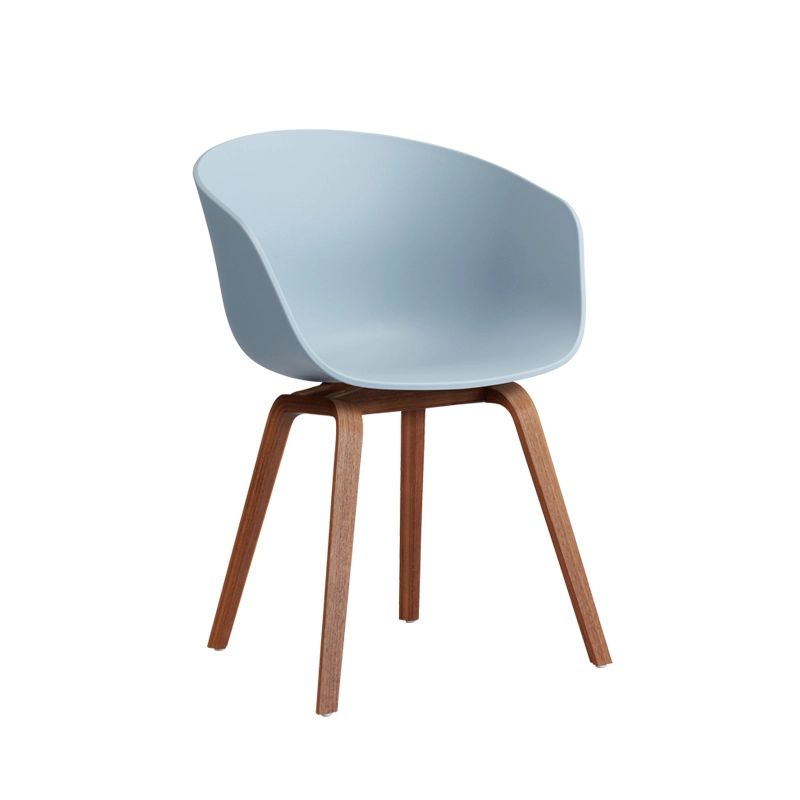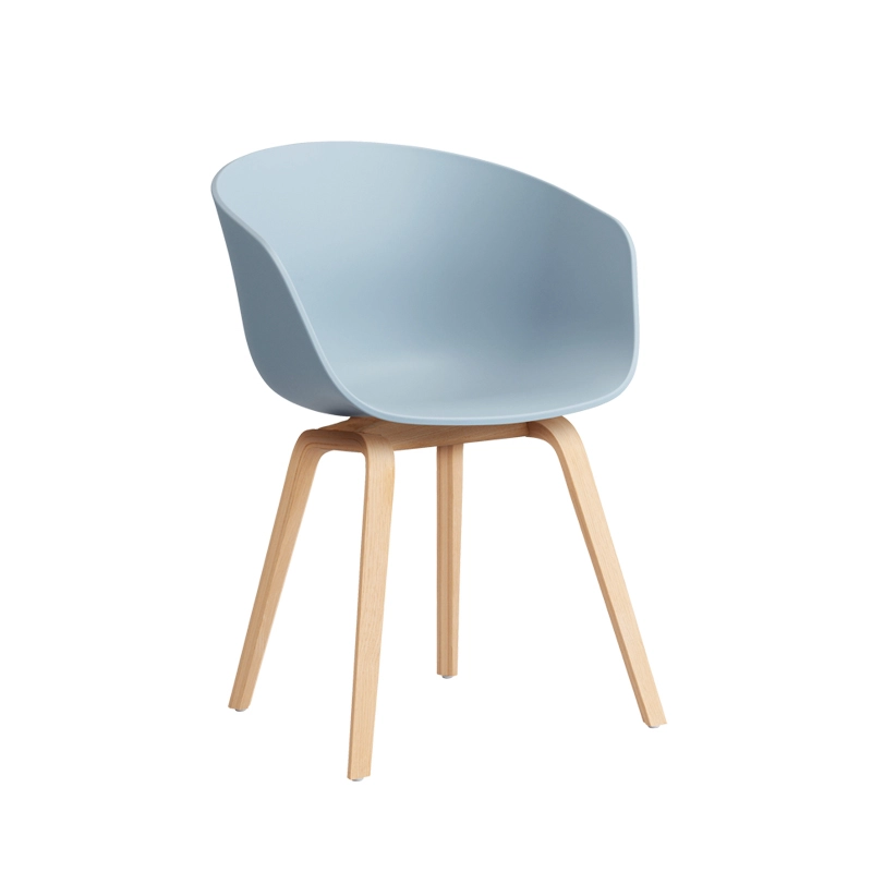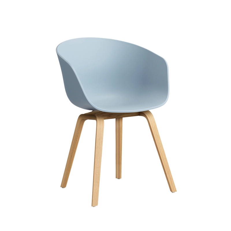 Designed by Hee Welling, the About A Chair collection sought to develop a chair equipped with undeniable simplicity. Understated, pure design for a chair that works just as well around a dining room table as it does around a conference table, in a canteen or in an office. The designer strived to combine form, function, detail and aesthetics. Produced by Danish company Hay, this collection features a wide range of colours and structures. Here, the polypropylene shell sits on a wooden base. Available as a chair and small armchair, About A Chair ensures optimum comfort thanks to its ergonomically shaped, wrap-around shell. A chair that perfectly symbolises the purity and understated, timeless style of Scandinavian design.