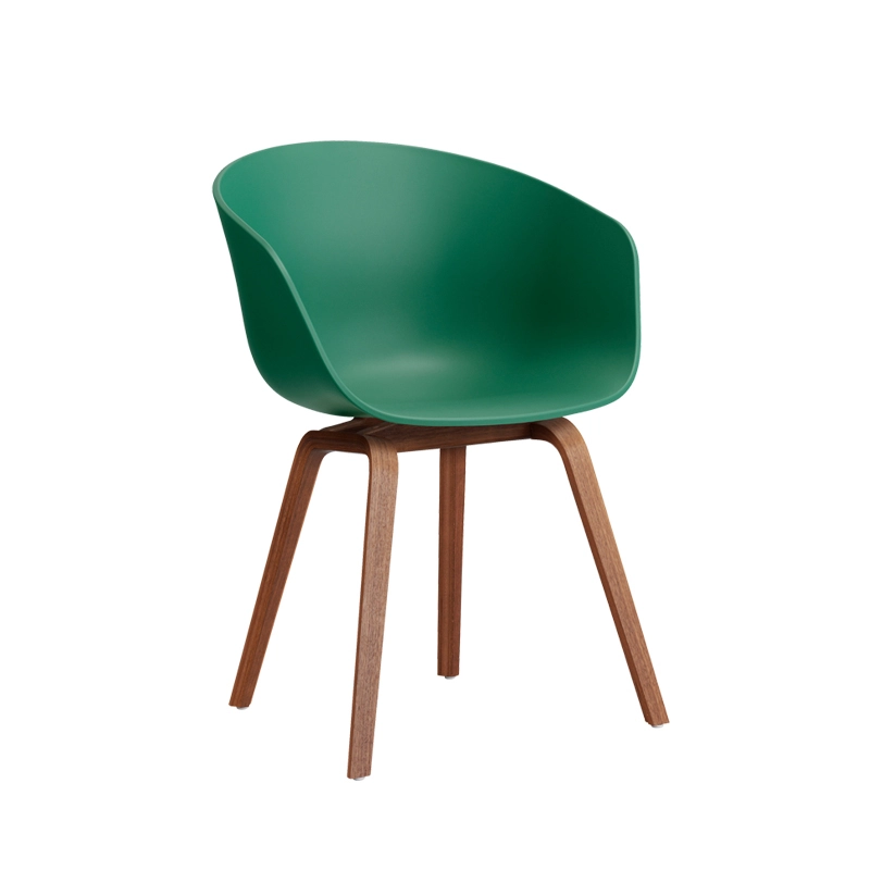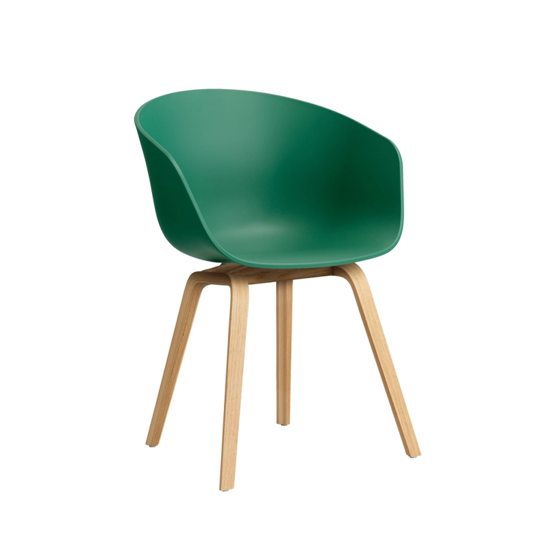Designed by Hee Welling, the About A Chair collection sought to develop a chair equipped with undeniable simplicity. Understated, pure design for a chair that works just as well around a dining room table as it does around a conference table, in a canteen or in an office. The designer strived to combine form, function, detail and aesthetics. Produced by Danish company Hay, this collection features a wide range of colours and structures. Here, the polypropylene shell sits on a wooden base. Available as a chair and small armchair, About A Chair ensures optimum comfort thanks to its ergonomically shaped, wrap-around shell. A chair that perfectly symbolises the purity and understated, timeless style of Scandinavian design.