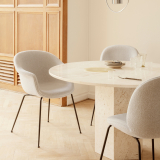 The Bat chair references the characteristics of bats, with its attractive and distinctive shell reminiscent of the shape of a bat's wingspan. Designed by Italian-Danish design duo GamFratesi for Gubi, the Bat chair was created with a Scandinavian approach, finding its balance between traditional and surprising. With a strong history and minimalism-inspired associations, the design of the Bat Dining Chair is as simple as it is functional. The wide range of shell and base options in different colours and finishes makes the Bat dining chair perfectly adaptable to a variety of public and private settings. In this version, the Light Bouclé fabric adds a warm touch to any dining room.