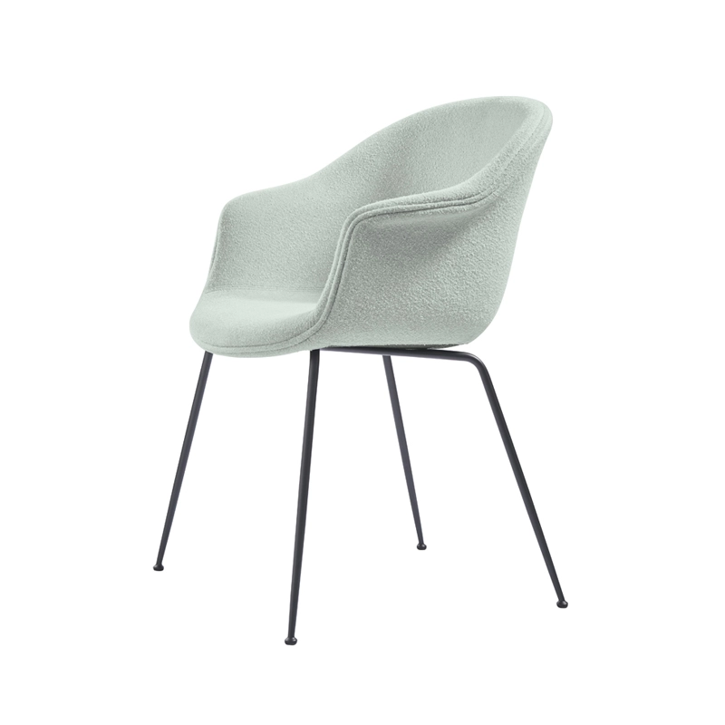 The Bat chair references the characteristics of bats, with its attractive and distinctive shell reminiscent of the shape of a bat's wingspan. Designed by Italian-Danish design duo GamFratesi for Gubi, the Bat chair was created with a Scandinavian approach, finding its balance between traditional and surprising. With a strong history and minimalism-inspired associations, the design of the Bat Dining Chair is as simple as it is functional. The wide range of shell and base options in different colours and finishes makes the Bat dining chair perfectly adaptable to a variety of public and private settings. In this version, the Light Bouclé fabric adds a warm touch to any dining room.