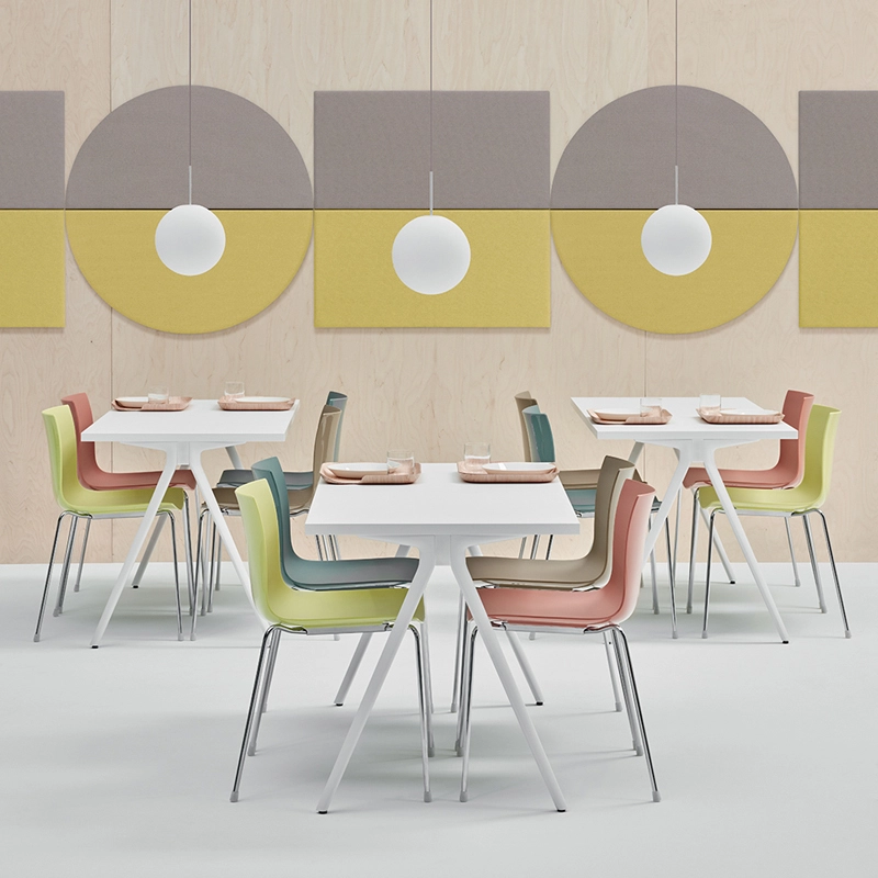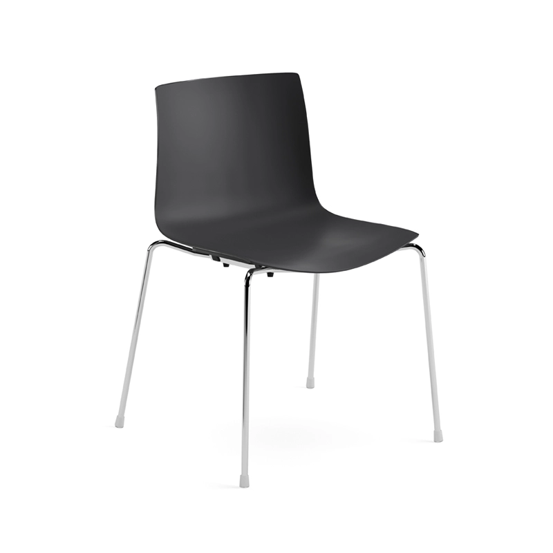 Catifa 46 is a chair that combines comfort and clean lines. Designed for contract and domestic spaces, it suits all projects, thanks to a wide range of finishes, colours and materials. The hull, which is both flexible and hard-wearing, is available in a wide range of finishes and is offered here in single-colour polypropylene. The base is also available in several versions: four legs in steel or wood, sled base, sledge base, four- or five-star central leg, with or without castors. The sled and four-legged versions are stackable for easy storage when used on a large scale.