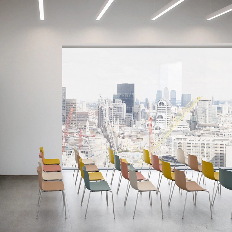 Designed by the design trio Lievore, Altherr and Molina for Arper, Catifa 46 is a chair that combines comfort and clean lines. Designed for contract and domestic spaces, it suits all projects, thanks to a wide range of finishes, colours and materials. The hull, which is both flexible and hard-wearing, is available in a wide range of finishes and is offered here in single-colour polypropylene. The base is also available in several versions: four legs in steel or wood, sled base, sledge base, four- or five-star central leg, with or without castors. The sled and four-legged versions are stackable for easy storage when used on a large scale.