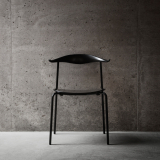 Known for his work in wood throughout his career, Hans J. Wegner has often explored the limits and potential of other materials. The chaise CH88T is the perfect example. Wegner originally developed the chaise CH88 as a prototype with coloured legs for the 1955 Helsingborg International Exhibition in Sweden. Several decades later, Carl Hansen put this chair into production to celebrate Wegner's 100th anniversary in 2014. The chaise CH88T is versatile, elegant and functional. Its stackable design brilliantly combines wood and industrial steel, highlighting Wegner's ability to give softness to minimalist forms. The steel frame supports a steam-curved wooden seat and backrest with curved ends that form a natural support for the arms. The Chair CH88T Carl Hansen is available in a range of woods in different finishes and with a stainless steel or black lacquered frame. CH88 is also available with an upholstered seat.