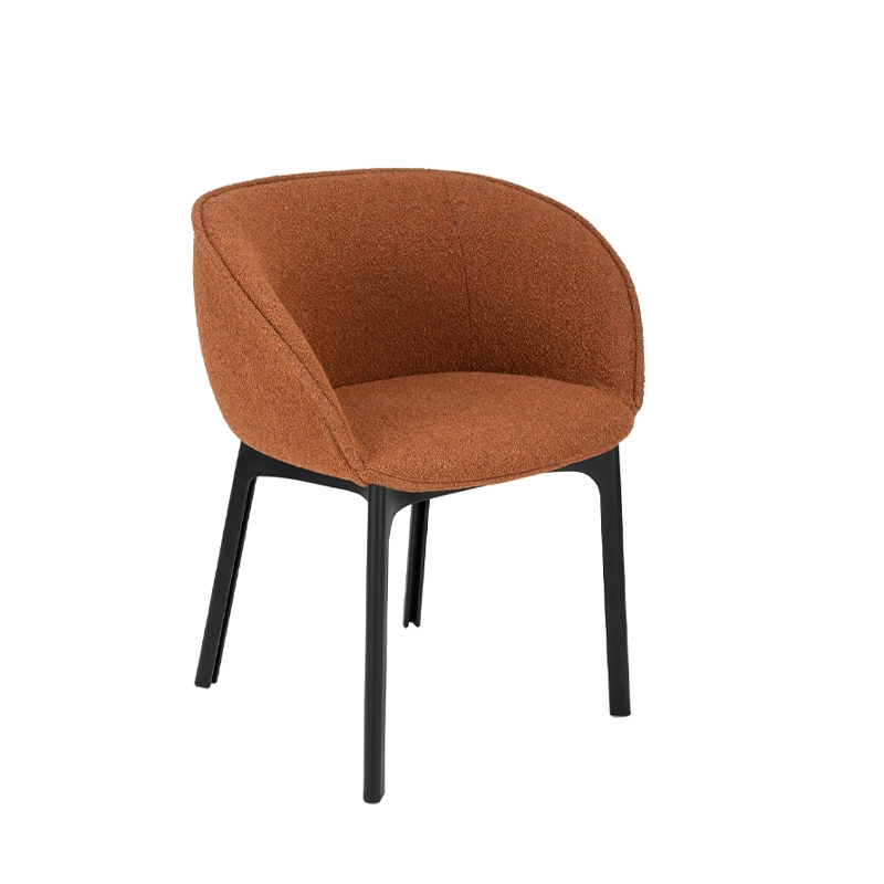 The small Charla armchair, designed by Patricia Urquiola for the renowned furniture brand Kartell, features black recycled plastic legs and an upholstered seat covered in high-quality fabric. With its wrap-around backrest, the petit fauteuil Charla is welcoming and very comfortable. Combining elegance and respect for the environment, the Charla Kartell armchair will fit perfectly into your space, whether around a dining table or for working in a home office.