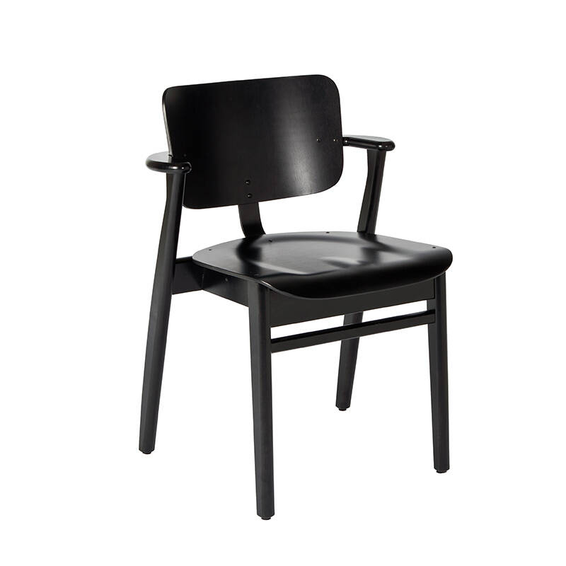 A masterpiece of modern furniture design, the Domus chair was created as part of a series of furniture pieces for the Domus Academica student housing complex in Helsinki. Comfortable enough to sit on for long periods of time, the chaise Domus became an international success, becoming known as "The Finn Chair". The characteristic short armrests mean that the Domus chair can be pulled close to a table, perfect for studying at a desk and eating, while still offering the necessary support and comfort. Designed in 1946 by Ilmari Tapiovaara, Domus chairs have since been placed in homes and public spaces around the world.