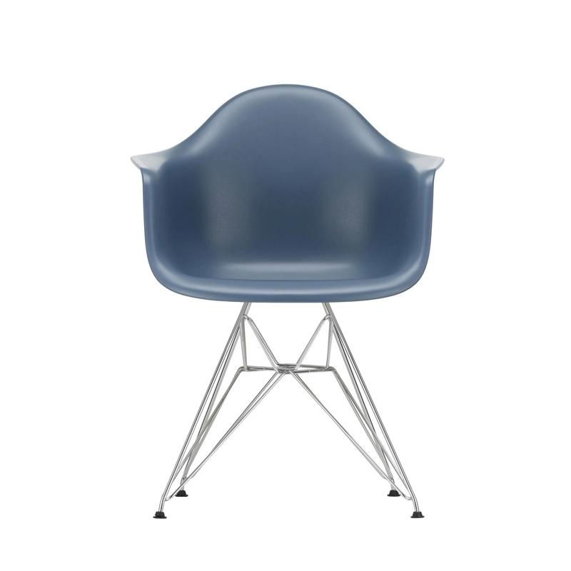 The Plastic Armchairs designed by Charles and Ray Eames in the 1950s were presented for the first time as part of the "Low Cost Furniture Design" competition organised by the Museum of Modern Art in New York. The shell with its organic lines was originally made of fibreglass. Re-issued by Vitra with a polypropylene shell, the Eames Plastic DAR (Dining Armchair Rod base) still offers great comfort at an affordable price. The base of the Eiffel Tower is made of shiny chrome plated steel rods. It's a small chair ideal for longer meals. The Eames Plastic Chair collection is now produced with a new seat height of 43cm, meeting new furniture standards.