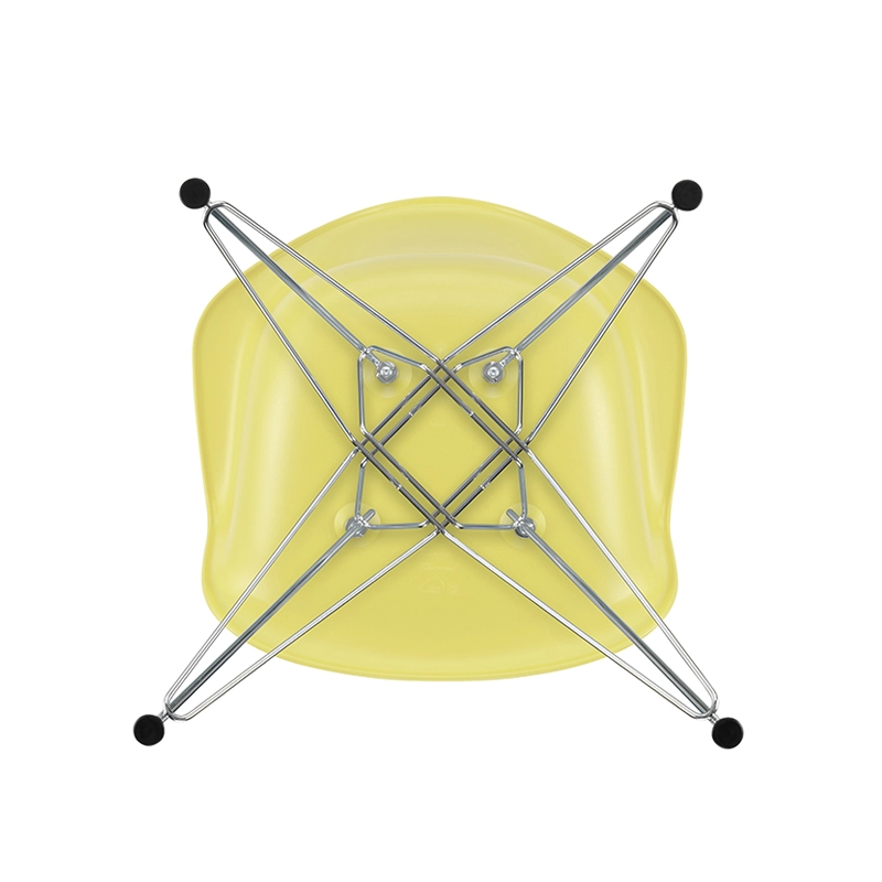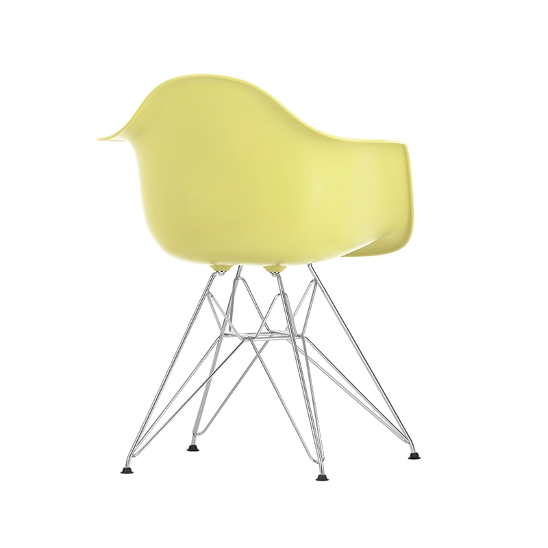 The Plastic Armchairs designed by Charles and Ray Eames in the 1950s were presented for the first time as part of the "Low Cost Furniture Design" competition organised by the Museum of Modern Art in New York. The shell with its organic lines was originally made of fibreglass. Re-issued by Vitra with a polypropylene shell, the Eames Plastic DAR (Dining Armchair Rod base) still offers great comfort at an affordable price. The base of the Eiffel Tower is made of shiny chrome plated steel rods. It's a small chair ideal for longer meals. The Eames Plastic Chair collection is now produced with a new seat height of 43cm, meeting new furniture standards.