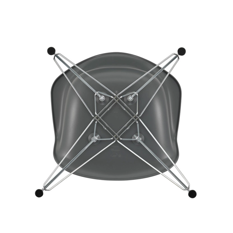 The Plastic Armchairs designed by Charles and Ray Eames in the 1950s were presented for the first time as part of the "Low Cost Furniture Design" competition organised by the Museum of Modern Art in New York. The shell with its organic lines was originally made of fibreglass. Re-issued by Vitra with a polypropylene shell, the Eames Plastic DAR (Dining Armchair Rod base) still offers great comfort at an affordable price. The base of the Eiffel Tower is made of shiny chrome plated steel rods. It's a small chair ideal for longer meals. The Eames Plastic Chair collection is now produced with a new seat height of 43cm, meeting new furniture standards.