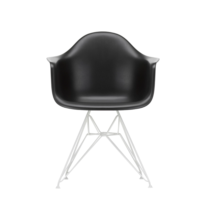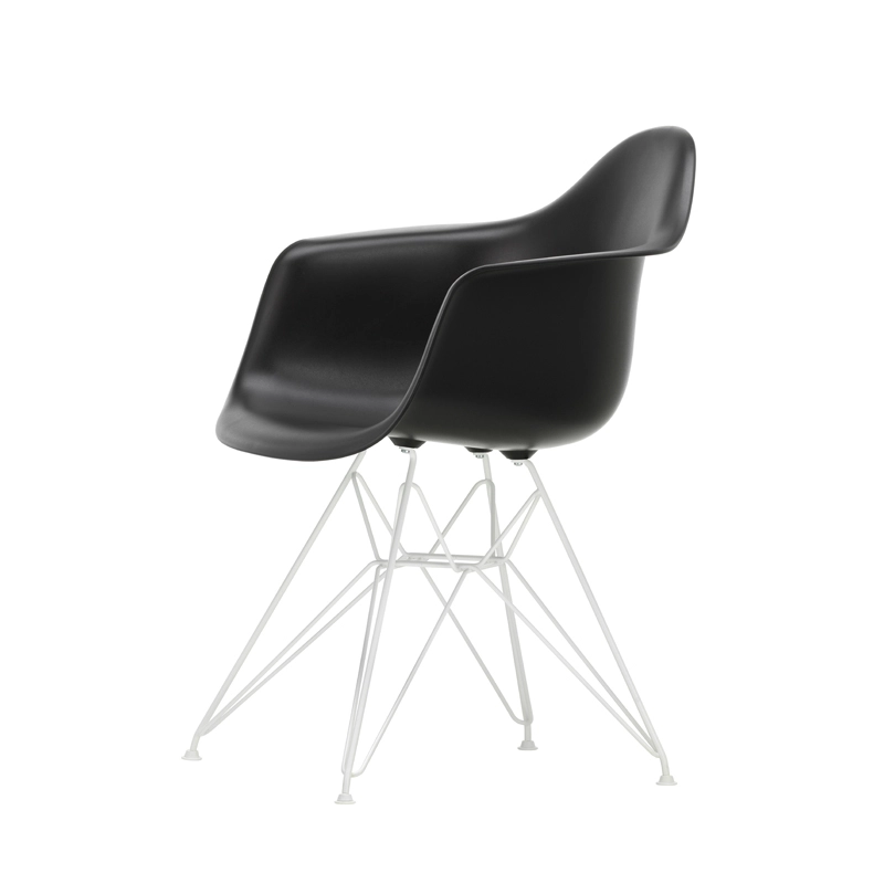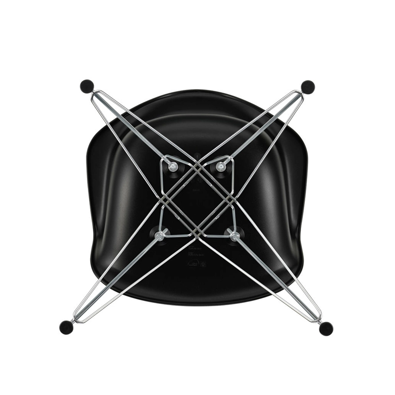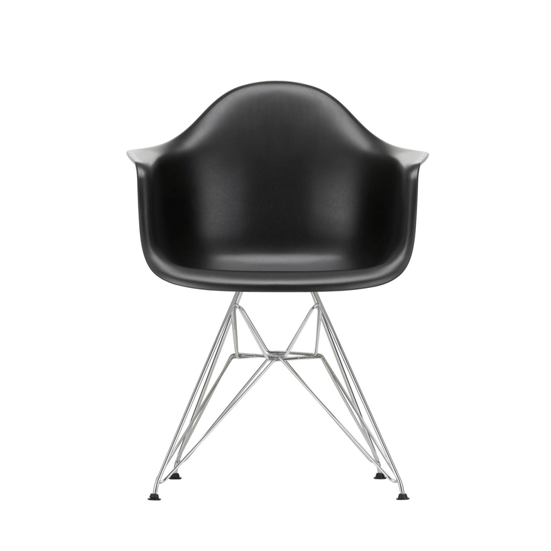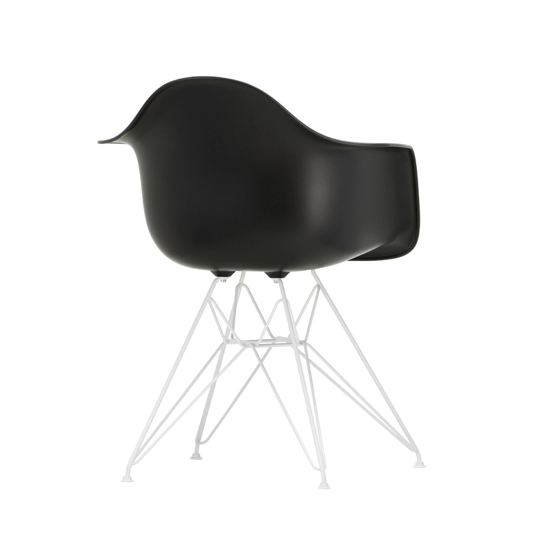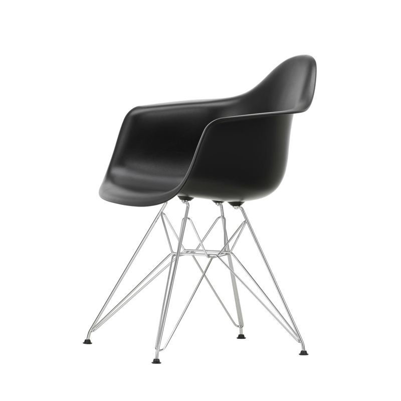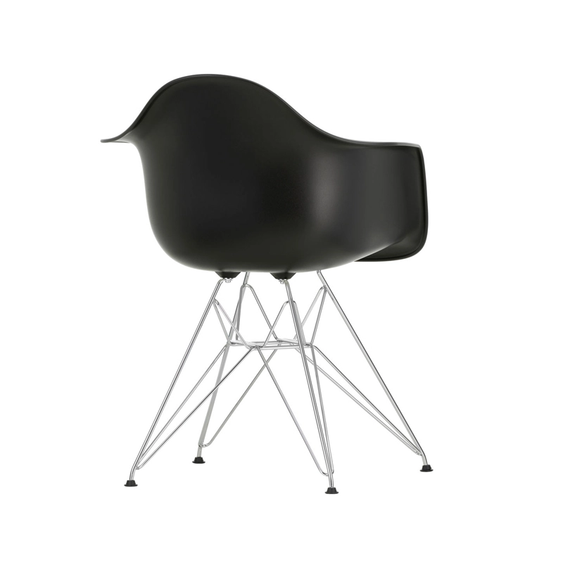 The Plastic Armchairs designed by Charles and Ray Eames in the 1950s were presented for the first time as part of the "Low Cost Furniture Design" competition organised by the Museum of Modern Art in New York. The shell with its organic lines was originally made of fibreglass. Re-issued by Vitra with a polypropylene shell, the Eames Plastic DAR (Dining Armchair Rod base) still offers great comfort at an affordable price. The base of the Eiffel Tower is made of shiny chrome plated steel rods. It's a small chair ideal for longer meals. The Eames Plastic Chair collection is now produced with a new seat height of 43cm, meeting new furniture standards.