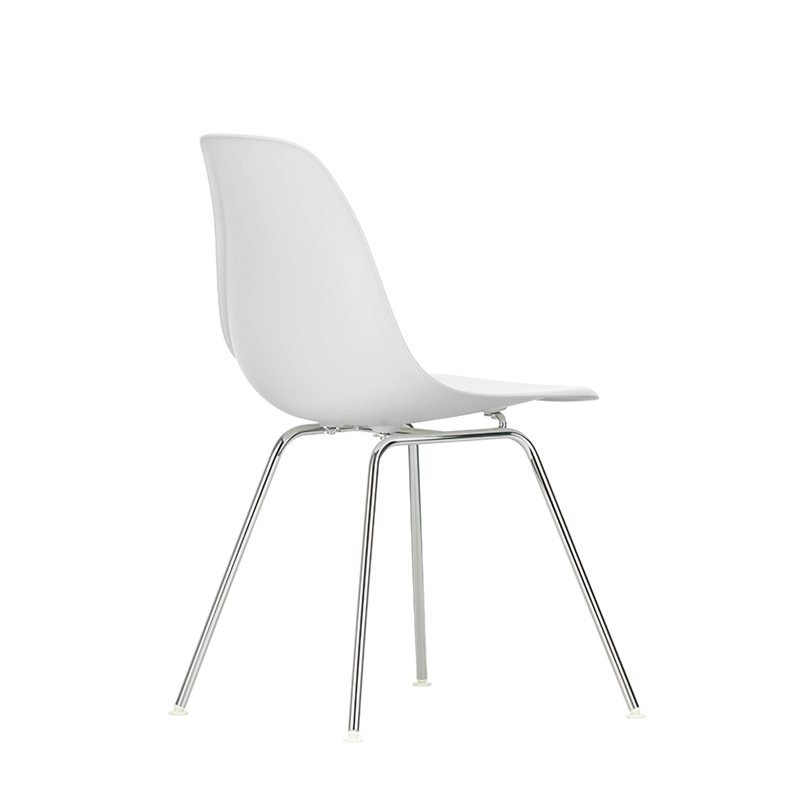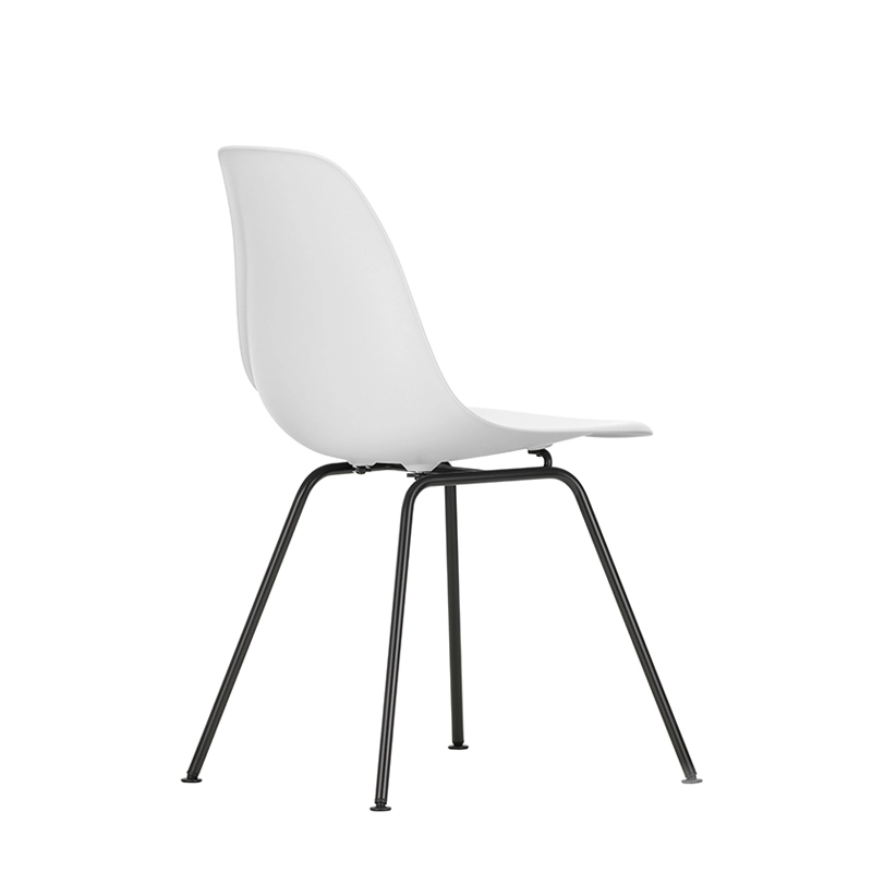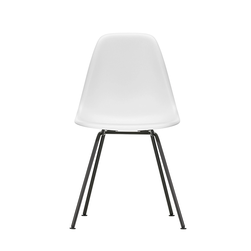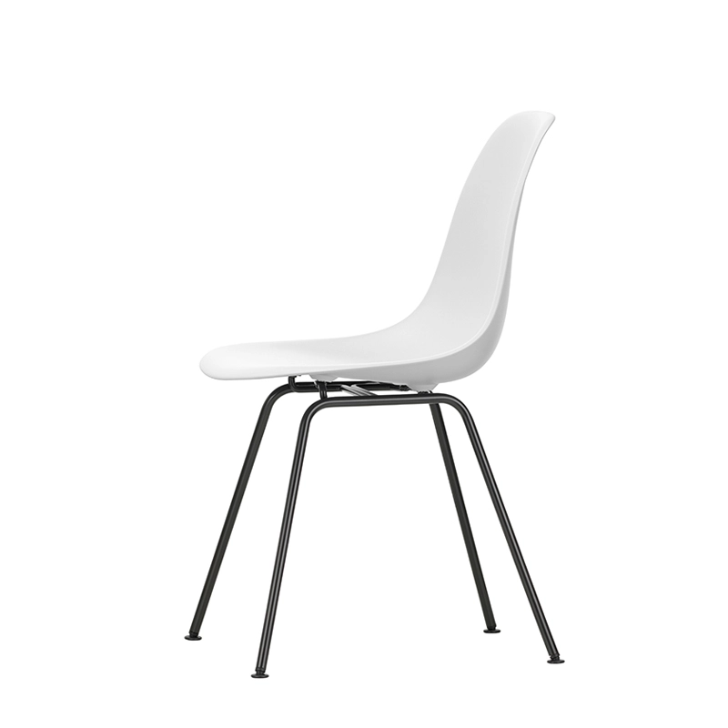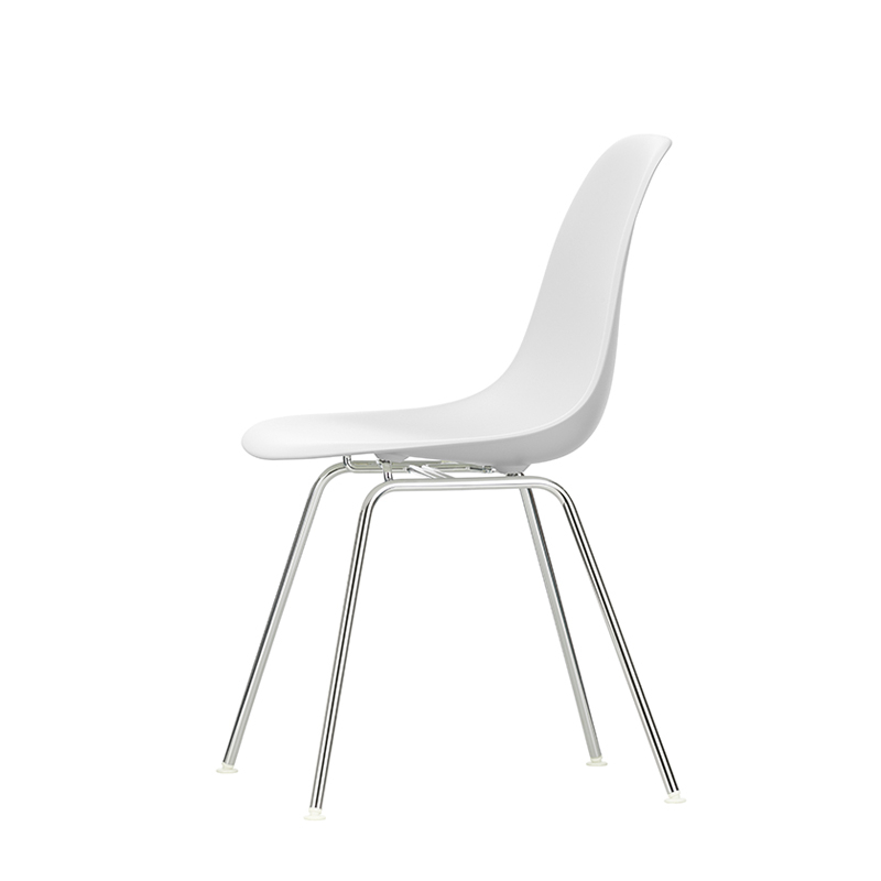 The Plastic Armchairs designed by Charles and Ray Eames in the 1950s were presented for the first time as part of the 'Low Cost Furniture Design' competition organised by the Museum of Modern Art in New York. The shell with its organic lines was originally made of fibreglass. Reissued by Vitra with a polypropylene shell, the chaise DSX (Dining Height Side Chair X-Base) with its sober aesthetic is defined by a four-legged tubular steel base and an organically shaped shell available in a wide range of colours. The base is available in a chrome-plated or black epoxy finish, which is also suitable for outdoor use. The chaise DSX is suitable for both domestic and public environments. By adopting moulded polypropylene, Vitra has improved both its robustness, elasticity and comfort. Starting with a single shell shape, the chair is available in three main families characterised by the shape of the base: the Eames DSR chair with Eiffel base, the Eames DSW chair with wooden lattice base and the Eames DSX chair with simple tubular base. The Eames DSXE chairs are available in several colours, with or without seat cushions or interior padding.
