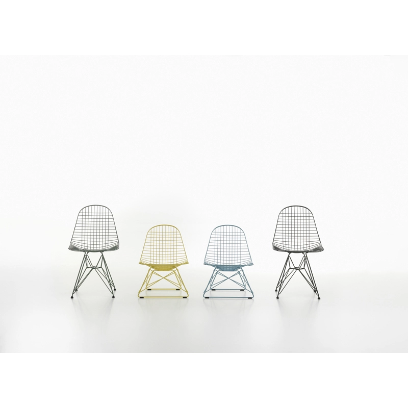 Charles and Ray Eames designed this variation of the DSR chair made of welded steel wire. The Wire Chair DKR combines lightness and technical sophistication. Thanks to its epoxy finish, the Wire Chair is suitable for terraces and gardens as well as dining rooms. Llke the rest of the Eames seating collection, this chair, produced by Vitra, is a timeless classic.