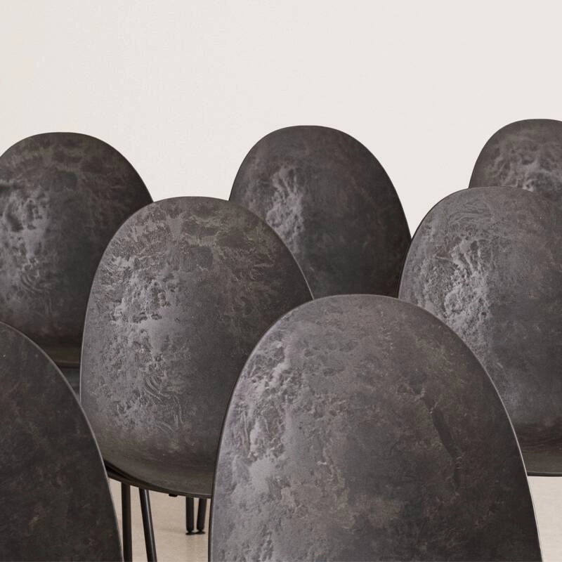 Eternity was designed by Space Copenhagen for the Mater brand. The chair is made from 70% industrial plastic waste mixed with 30% coffee bean waste, thanks to a technology developed by Mater. Eternity can be completely dismantled, allowing each component to be recycled in new production circles. The Eternity chair is available with or without armrests, and comes in different versions: without upholstery, with upholstered seat and with upholstered front. Comfortable and functional, the Eternity stacking chair is durable, discreet and elegant, suitable for both private and public use. Variations in finish are possible, due to the use of recycled materials.