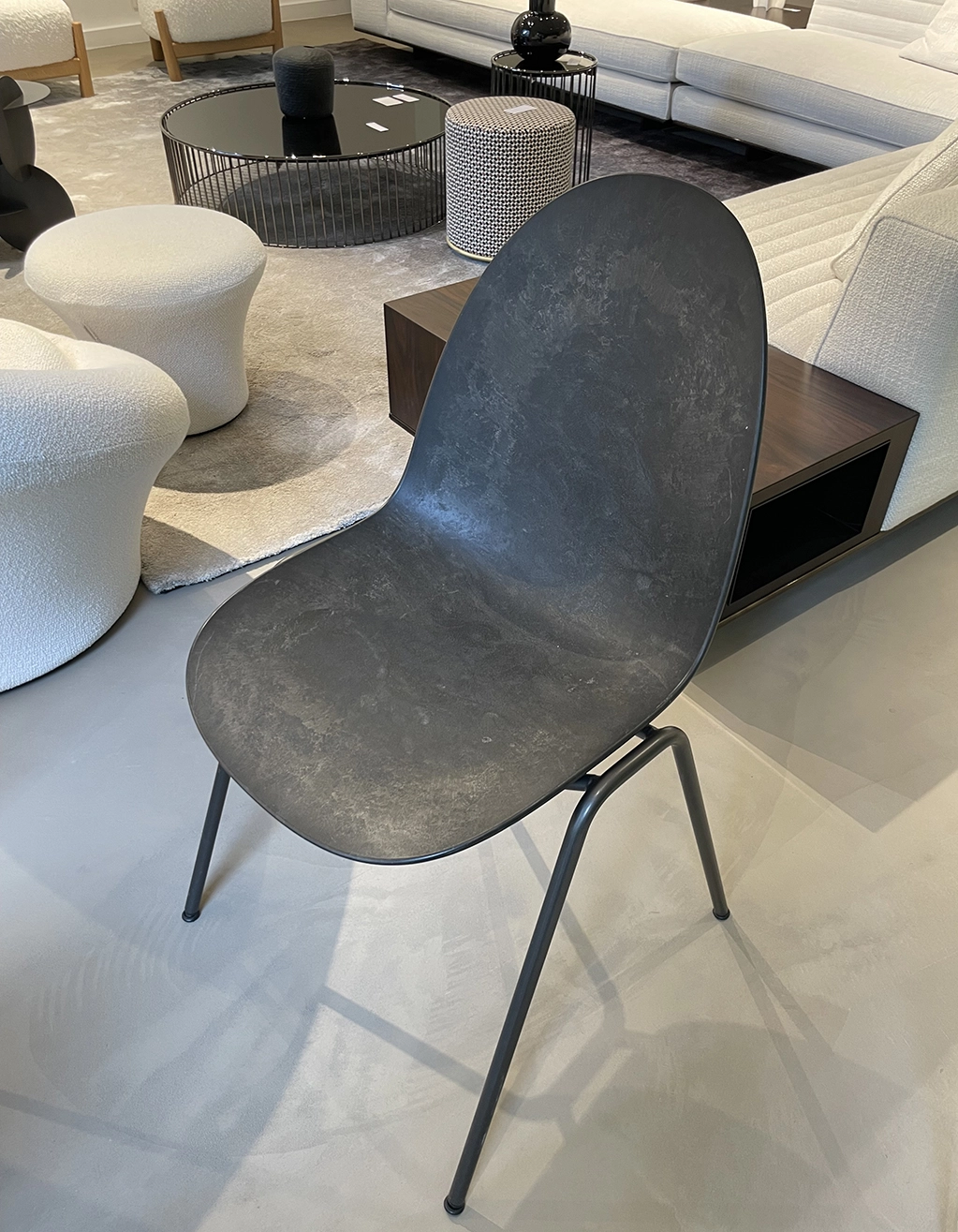 coque 22% déchets de café, 70% déchets plastique recyclés, 8% fibre de verre recyclée, pieds 20% acier recyclé finition gunmetal