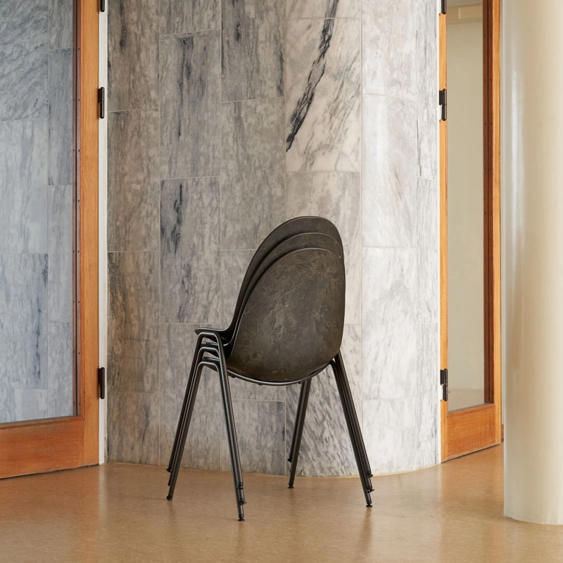 Designed by Space Copenhagen, Eternity is a stackable chair made from waste using a revolutionary new technology, patented by Mater called "Mater Circular Material". Integrating easily into different types of spaces and interiors, the design of the Eternity chair focuses on comfort and functionality, combined with industrial and sculptural features.