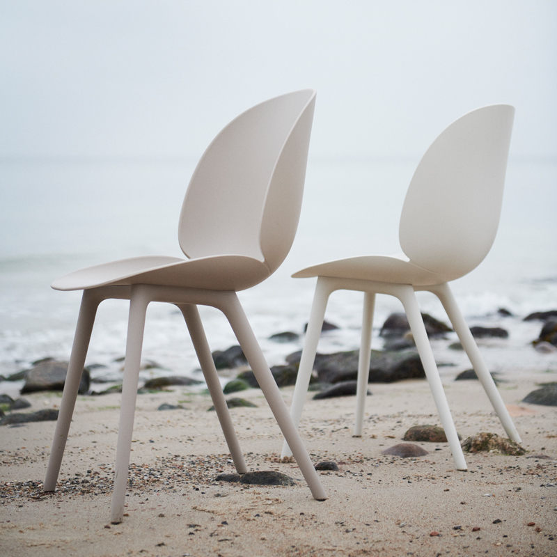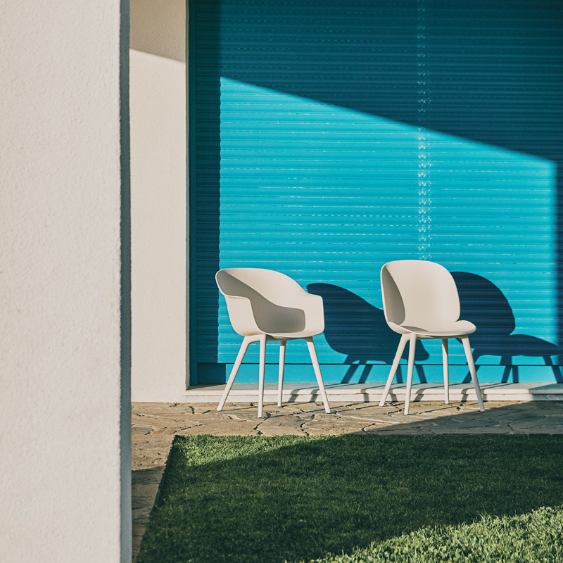 Designed by the renowned studio Gamfratesi for the Gubi brand, the plastic version of the famous Beetle chair has been reimagined for outdoor use. A fresh look at materials, aesthetics and function led to the addition of an outdoor treatment, opening up new possibilities and making these chairs perfect for both indoor and outdoor use. Special additives added to the moulded polypropylene prevent discolouration due to changes in the weather. Thanks to the lightweight material, Beetle chairs are easy to move around, breaking down the barriers between indoor and outdoor spaces.