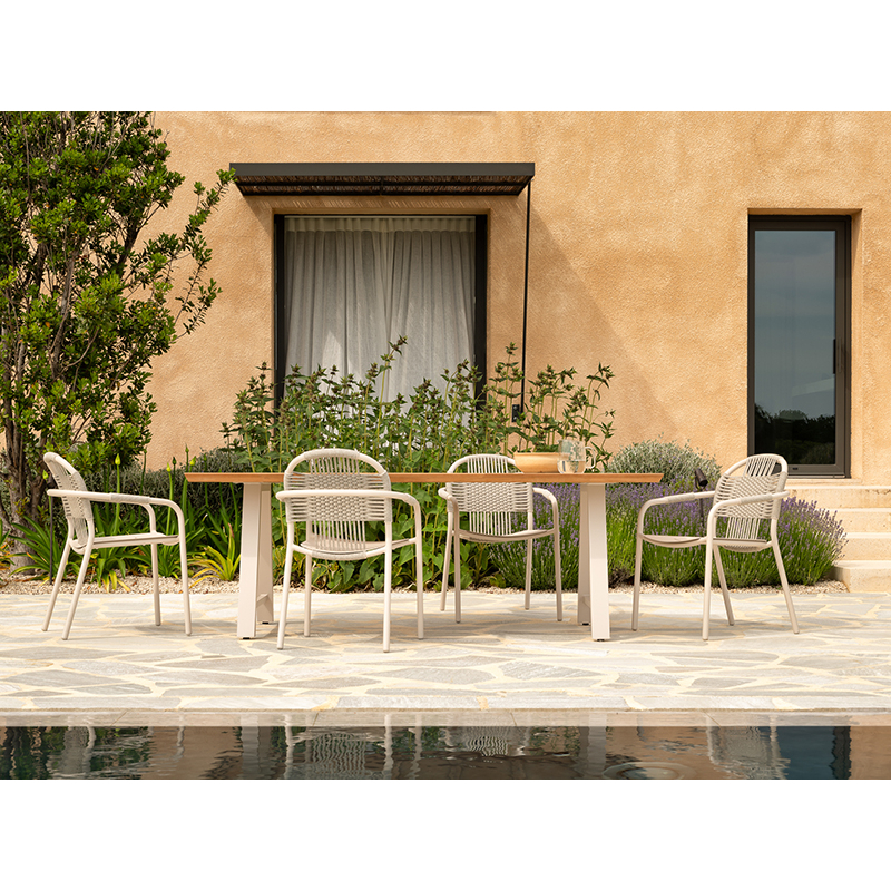 Treat yourself to the ultimate in comfort and elegance with the Cleo chair by Vincent Sheppard. Made from top-quality materials, it is designed to withstand the elements, ensuring exceptional durability even in the most challenging conditions. Its lightweight yet sturdy aluminium frame is skilfully woven with polypropylene rope. The ergonomic design of the Chaise Cleo ensures optimum comfort, with a spacious seat and gently sloping backrest that perfectly supports the back. Whether you want to relax or share memorable moments with friends, this chair is ideal for outdoor use. Versatile and elegant, the Cleo chair by Vincent Sheppard adapts harmoniously to a variety of outdoor décor styles, adding a touch of sophistication to your garden, terrace or patio. Its sleek, contemporary design instantly enhances the ambience of your outdoor space.