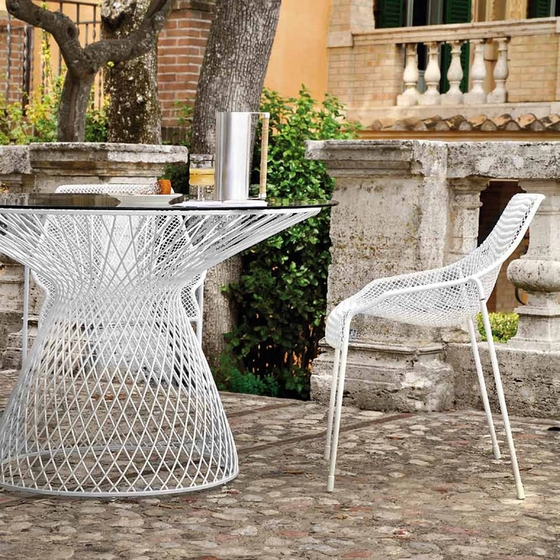 The Heaven collection, designed by Jean-Marie Massaud for Emu, is a line of products that has combined important shapes with an elemental harmony of proportions, for a result that is both chic and very balanced. The designer has used Emu's expertise in working with metal to breathe new energy into the material. The steel is woven like fabric, using a single automated welding process, giving an impression of great lightness and incorporeal volume. The shell of the chair is moulded to fit the body perfectly and offer optimum comfort. For the table, the leg is woven into a single piece, on top of which rests a smoked grey or transparent glass top. Heaven is an original collection with surprising shapes and a play of visual transparency that can be used on a terrace, in the garden or, why not, inside your home.