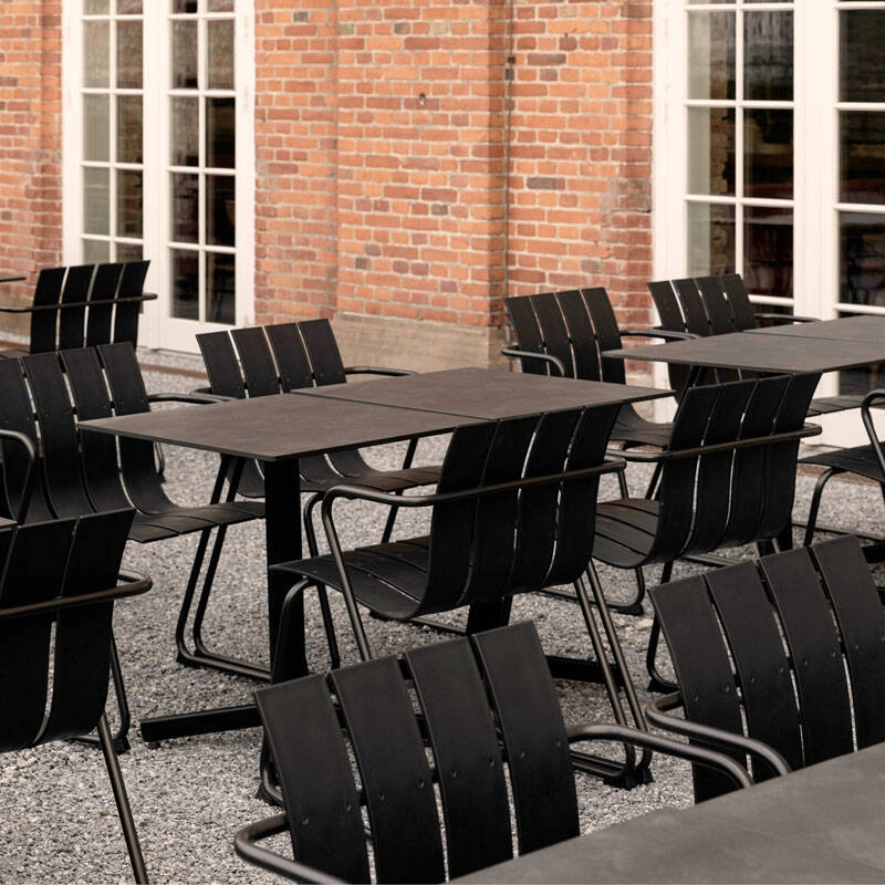 Published by Mater, Ocean is a collection of outdoor furniture made from fishing nets. Originally created in 1955 by the famous Danish couple, Nanna & Joergen Ditzel, the design has been reimagined and re-edited using plastic waste found in the oceans.  Made up of repeating slats and a metal base, the Ocean collection features a lightweight structure designed and tested for outdoor use. This design represents innovative and sustainable thinking, and supports many of the United Nations' sustainable development goals. The Ocean Mater collection includes a chair, a bench, a lounge chair, a coffee table and two dining tables, all available in two colours: black and sand. All the pieces in the Ocean collection can be completely dismantled, allowing each component to be recycled in new production circles.  Variations in finish are possible, due to the use of recycled materials.