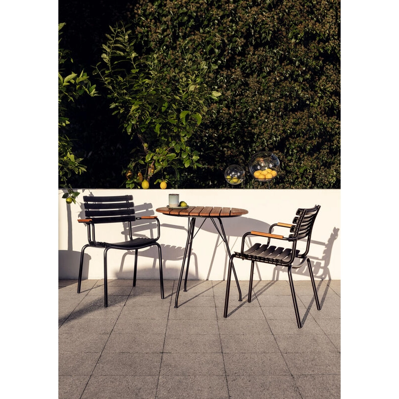 Reclips by designer Henrik Pedersen and the Houe brand is a stylish and functional outdoor seating collection that combines contemporary design with exceptional comfort. Reclips seats consist of wide plastic slats clipped onto an aluminium frame. The slats are made from Danish household plastic waste and produced in Denmark. Both lightweight and robust, the Reclips chair is designed to stay outdoors while retaining its timeless elegance. Whether in a garden or on a terrace, Reclips finds its place in all outdoor styles. As elegant as it is comfortable, the chaise Reclips Houe is available with aluminium or bamboo armrests.