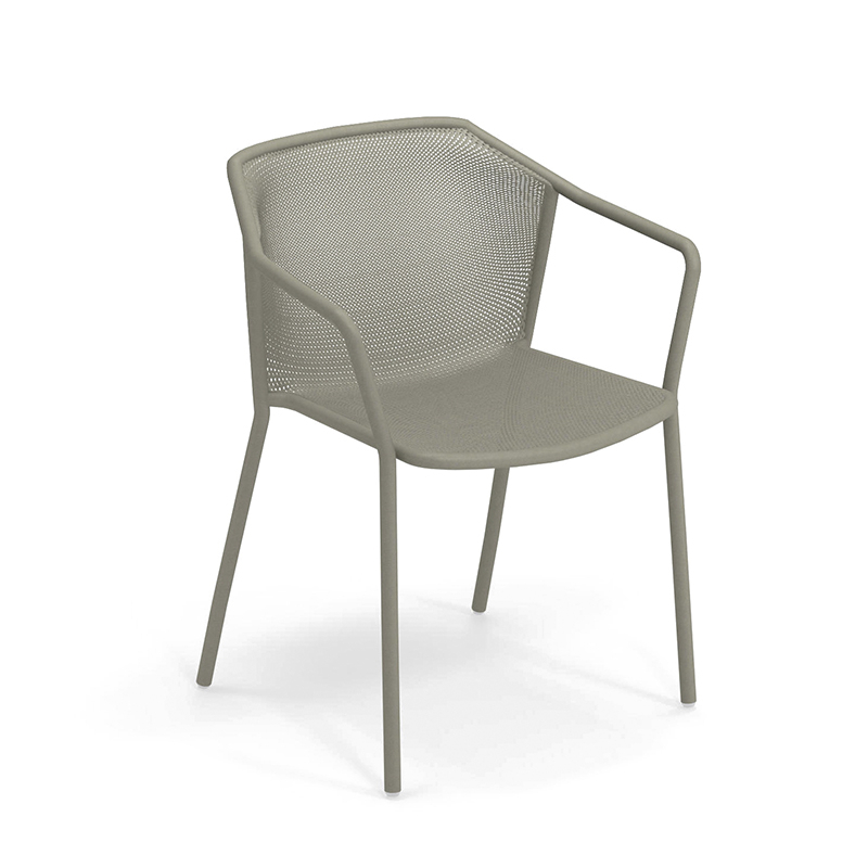Darwin is a chair with ergonomic proportions and light lines. Comfortable and functional, Darwin by Lucidi and Pevere for Emu is a collection of steel outdoor furniture that evokes classical themes, through a delicate weave of sheet metal inserted into a structure of contemporary geometry. The textured effect of the seat and back is the distinguishing style element of this collection, blending well with the lines of the structure. Available with or without armrests, the Darwin outdoor chair can be stacked up to 8 high.