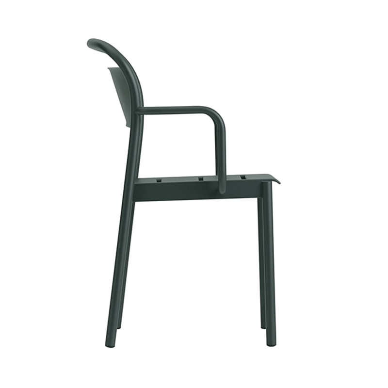 The small armchair Linear Steel by Muuto was designed with simple, elegant lines and subtle details for a modern expression. With its appealing organic shapes, great comfort, and durable qualities, Linear Steel is an outdoor armchair that makes no compromises. It is defined by its contrasts, combining clean lines for the seat with gentle curves for the enveloping backrest. Edited by Muuto, Linear Steel is a sustainable collection that offers a solution as functional as it is aesthetic for any garden, terrace, café, or workplace.