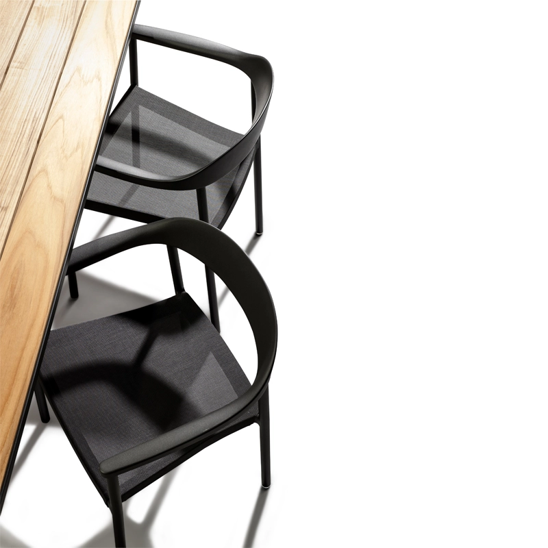 The Illum collection from Tribu is an outdoor version of classic Scandinavian interior furniture, designed in a weather-resistant material. Here, aluminium is used as an alternative to wood, and Batyline to ensure the solidity of the seat, with its clean lines and soft shapes. The Illum collection is resolutely functional, while remaining comfortable and elegant. The slightly curved backrest of the Chaise Illum guarantees sure seating comfort and an attractive design.