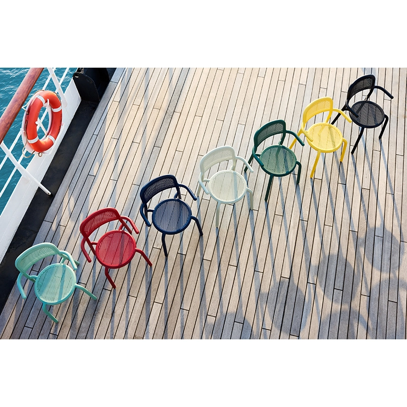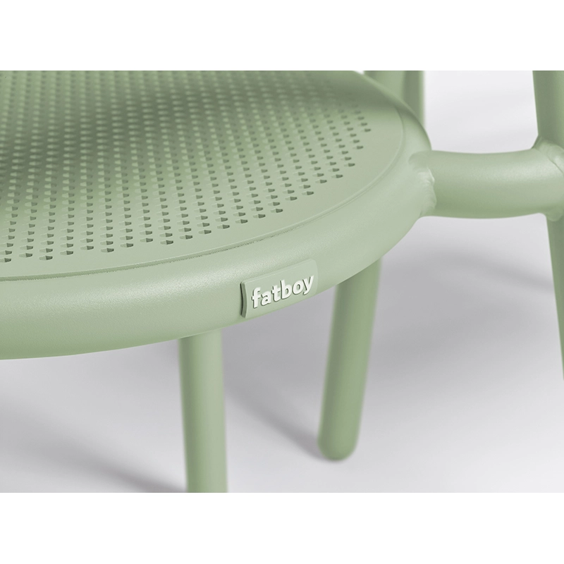 Lightweight and compact, Toní by Fatboy is the ideal chair for every garden or terrace. The friendly design is a playful nod to the classic bistro chair. Its lightweight aluminium frame makes it easy to move around. The Toní chair can also be stacked with up to four chairs. Ideal for a quick change of layout or entertaining more guests at a barbecue. The Toní chair is perfect for a moment of relaxation. Create your ideal terrace by adding the Toní Tablo or Toní Bistreau table to this chair. Available in a range of colours, to be combined and matched ad infinitum. The entire Toní collection is designed with a high-quality exterior coating that meets the highest standards, stainless and UV and weather resistant.
