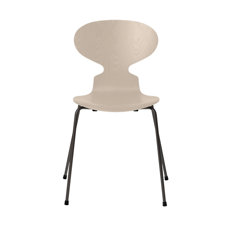 Arne Jacobsen's Fourmi chair is an icon that looks a bit like the shape of a fourmi with its head raised. Arne Jacobsen originally designed the Fourmi chairs for the canteen of Novo Nordic, a Danish pharmaceutical company, in 1952. Today the Ant chair is one of the dominant icons in the Fritz Hansen collection. Although the shapes are minimalist, the Fourmi is an extremely comfortable chair. It is a stackable chair made of oak wood and mounted on a four-legged base in satin-finish stainless steel tube.The shell is made of die-cast veneer — seven layers of inner veneer and two layers of outer veneer at the bow and stern of the shell. The inner veneer is made of beech.
