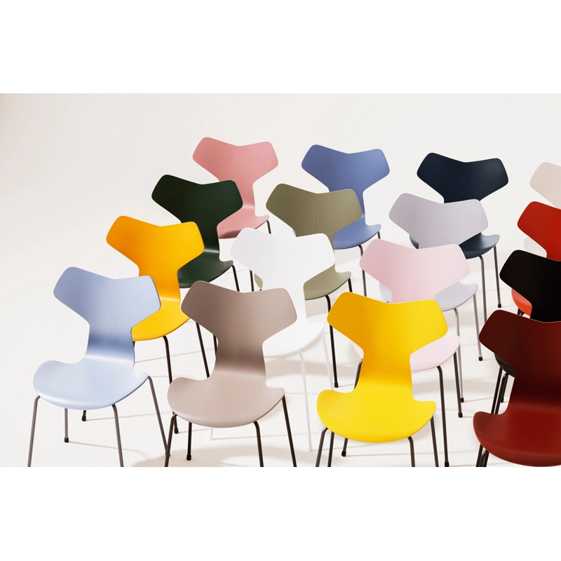 Designed by Arne Jacobsen, the Grand Prix chair was presented by Fritz Hansen at the Spring Designers Exhibition at the Museum of Art and Design in Copenhagen in 1957. Later in the year, this chair was awarded the Grand Prix at the Milan Triennial. The Grand Prix is produced with a tubular steel base like the 7 Series or with a wooden base, as it was originally presented. This timeless piece works in any style of interior and the different finishes available marry well together to create harmonious configurations around the table.