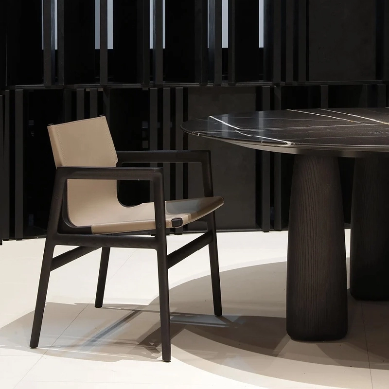 The Ipanema collection by Jean-Marie Massaud for Poliform has been enriched by a new version of the chair. With no upholstery, replaced by a thin, hand-crafted leather cover curved to the height of the backrest for greater comfort, the chair takes on a more dynamic and refined design.
