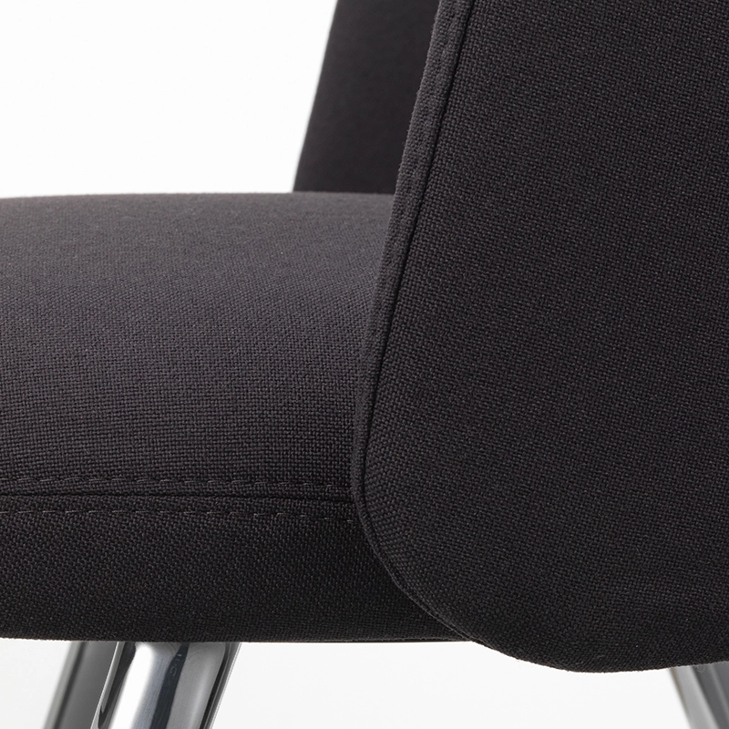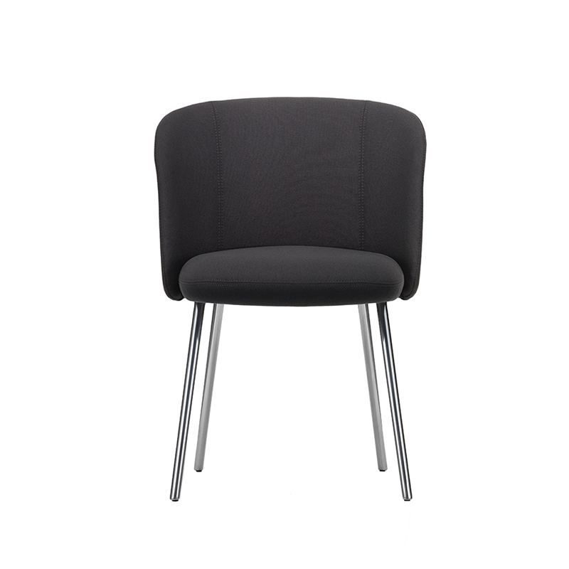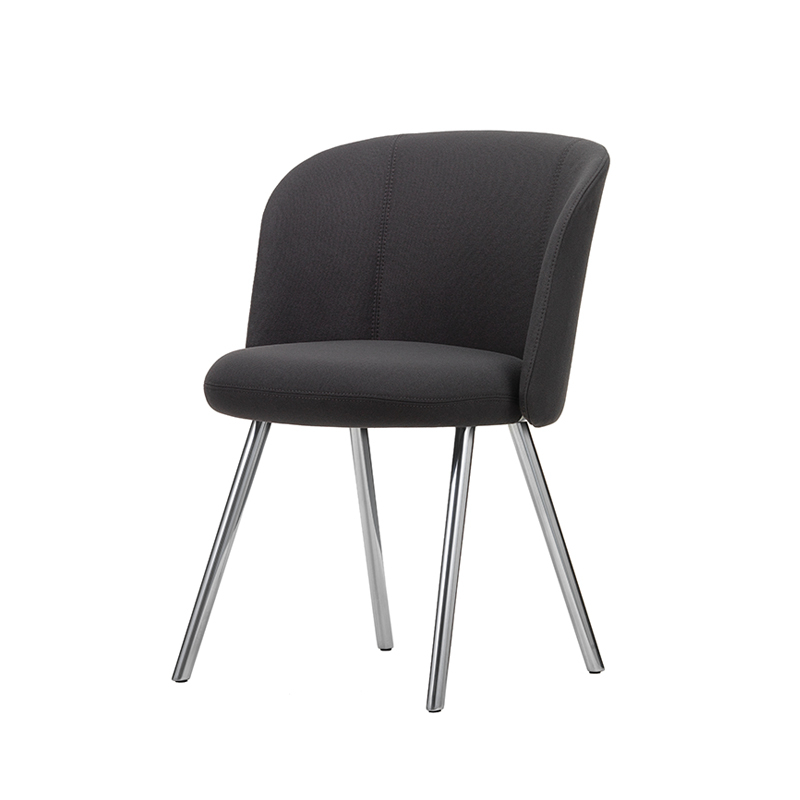 coque du dossier polypropylène recyclé post-consommation, rembourrage mousse polyuréthane, revêtement non collé tissu, pieds aluminium poli
