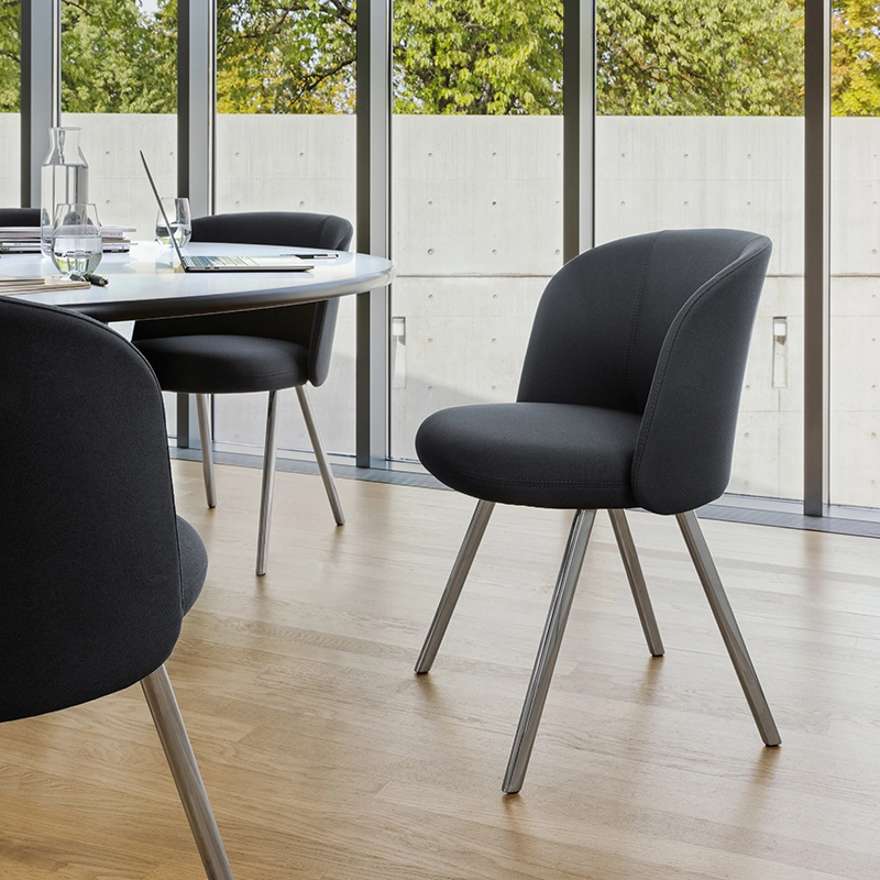 Designed by Edward Barber Jay Osgerby for Vitra, Mikado is an elegant and surprising seat. It is very comfortable and its wrap-around shape gives an impression of serenity and strength. Thanks to a simple and ingenious mechanism concealed beneath the seat, the backrest of Mikado reclines slightly. Mikado is available in two versions: chair and armchair. In the armchair version, the rounded backrest extends subtly into armrests. The base is available in aluminium or oak and can be combined with a wide choice of fabrics. The Mikado seat covers from Vitra are not glued and can be removed for cleaning or replacement. The legs can be replaced individually or exchanged for another material - wood or recycled aluminium. The ease with which components can be replaced gives the Mikado Vitra chair long-term versatility, guaranteeing its longevity.