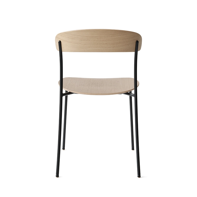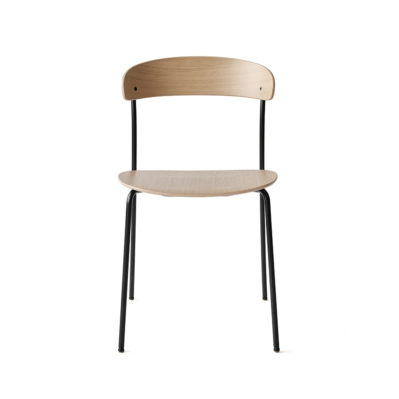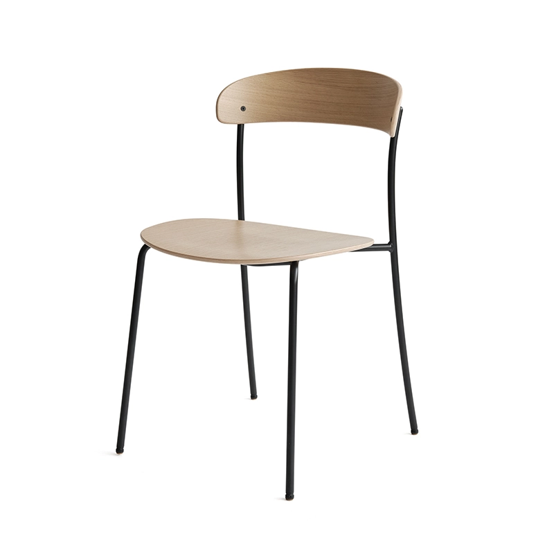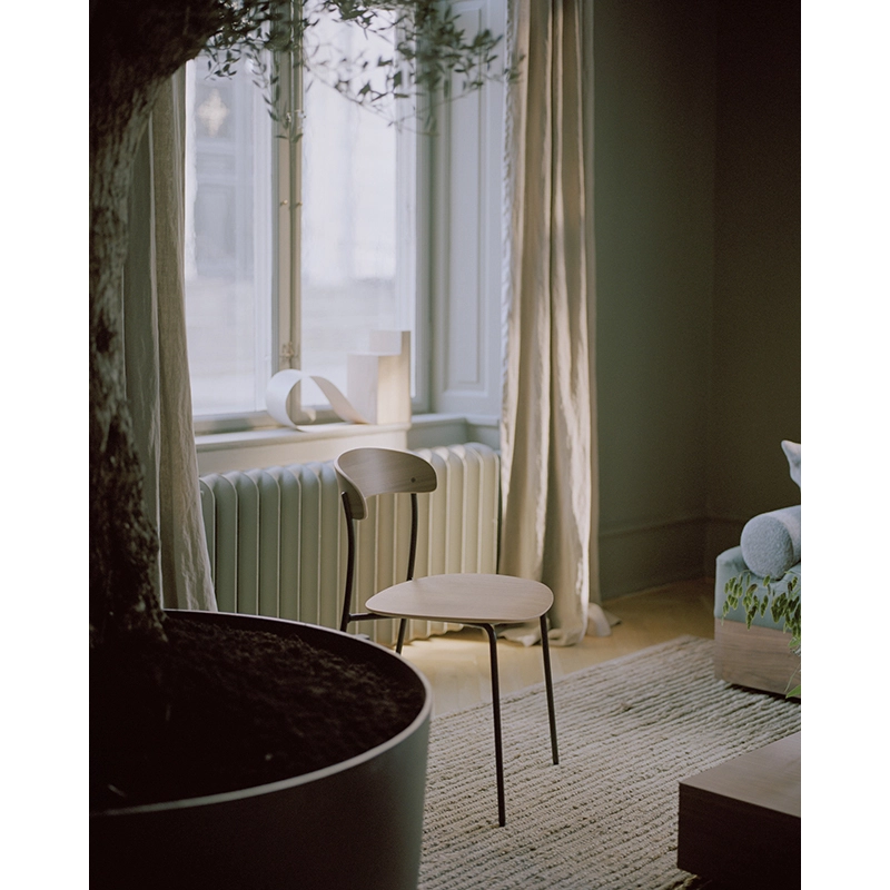 Published by New Works, the Missing chair appears like a line drawing brought to life. Sensual yet strong, the gentle curve of each line creates a fantasy that is hard to describe. The straight lines have been softened, giving the impression that the seat and backrest float above the slim steel structure. The result is a chair that gets straight to the point, a contemporary and functional interpretation of the modest café chair: lightweight, stackable and durable, complemented by a very comfortable silhouette.