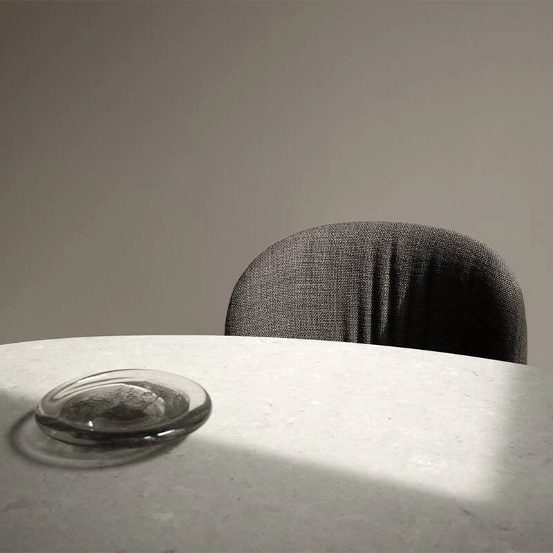 Edited by Wendelbo, the Ovata Dining chair takes the comfortable silhouette of the armchair of the same name, declined for dining. Defined by its oval backrest with pleated upholstery enveloping the round seat, the Ovata Dining Chair takes its name from a fat plant with thick, soft, rounded leaves, from which it takes its inspiration.
