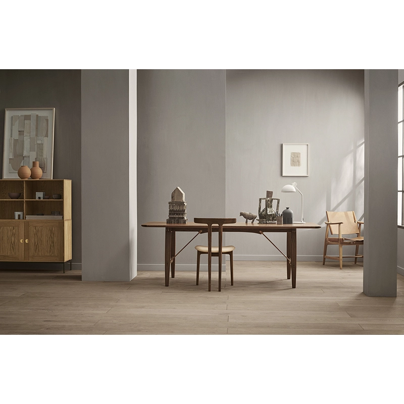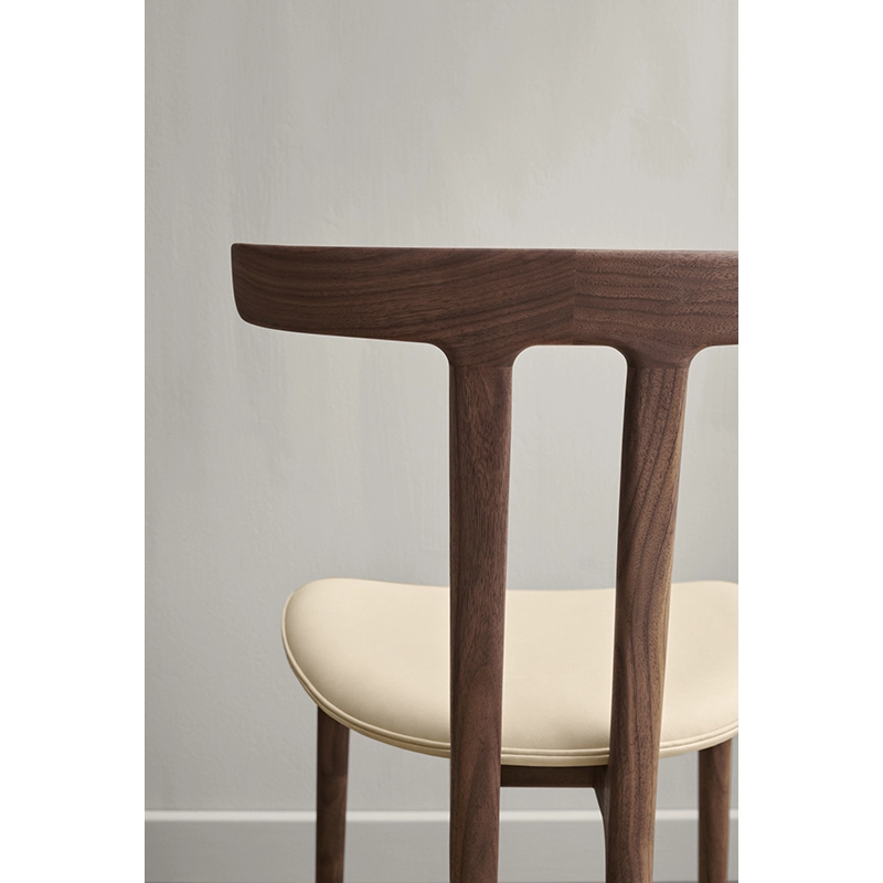 The distinctive expression of designer Ole Wanscher's OW58 T-shaped chair for Carl Hansen challenges the art of the possible without compromising craftsmanship or comfort. Adjusted only in height to provide optimal ergonomics for today's design enthusiasts who have grown up since 1958, the OW58 sculptural chair combines classic and modern lines to give the OW58 chair a light and elegant appearance. THE chair is the result of meticulous treatment and many hours of carpentry to achieve smooth transitions in durable wood joints. The most striking detail of the chair is the T-shaped back, which blends perfectly with the narrowly placed back legs, giving the chair a three-legged appearance. Despite its lightweight expression, the T-Chair Carl Hansen has a wide, upholstered seat that offers excellent comfort, making it ideal for use around a dining table.