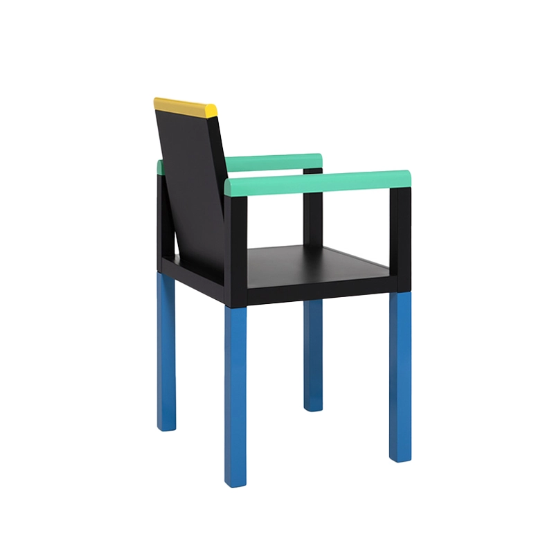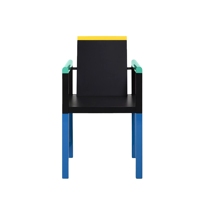 Published by Memphis Milano, Palace was designed by George J. Sowden in 1983. With its solemn, essential presence, the Palace chair is a true icon of Memphis' quiet transformation. The small Palace armchair reinterprets the rationalist forms of design, referring to the clean lines of Bauhaus, while highlighting the structural elements through colour, a favourite of Memphis. The Palace chair by Memphis Milano is more than just a seat, it's a style statement that will instantly transform your space.