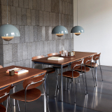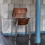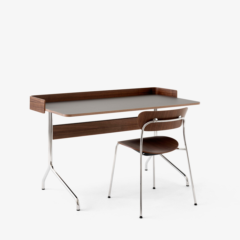A testament to post-war modernism, the Langelinie Pavilion is an iconic place in Copenhagen, built in the 1950s. Architect couple Eva and Niels Koppel created the steel and glass modules that line up with the horizon, allowing views of the waterfront and the promenade. To create a stackable chair for this historic building, designers Anderssen & Voll wanted to combine the classic modernism of this 1950s building with a new form of modernism. Whatever angle you look at it from, the Pavilion chair has a light, graceful silhouette. In chrome, the Pavilion And tradition chair goes perfectly with the desk from the same collection.